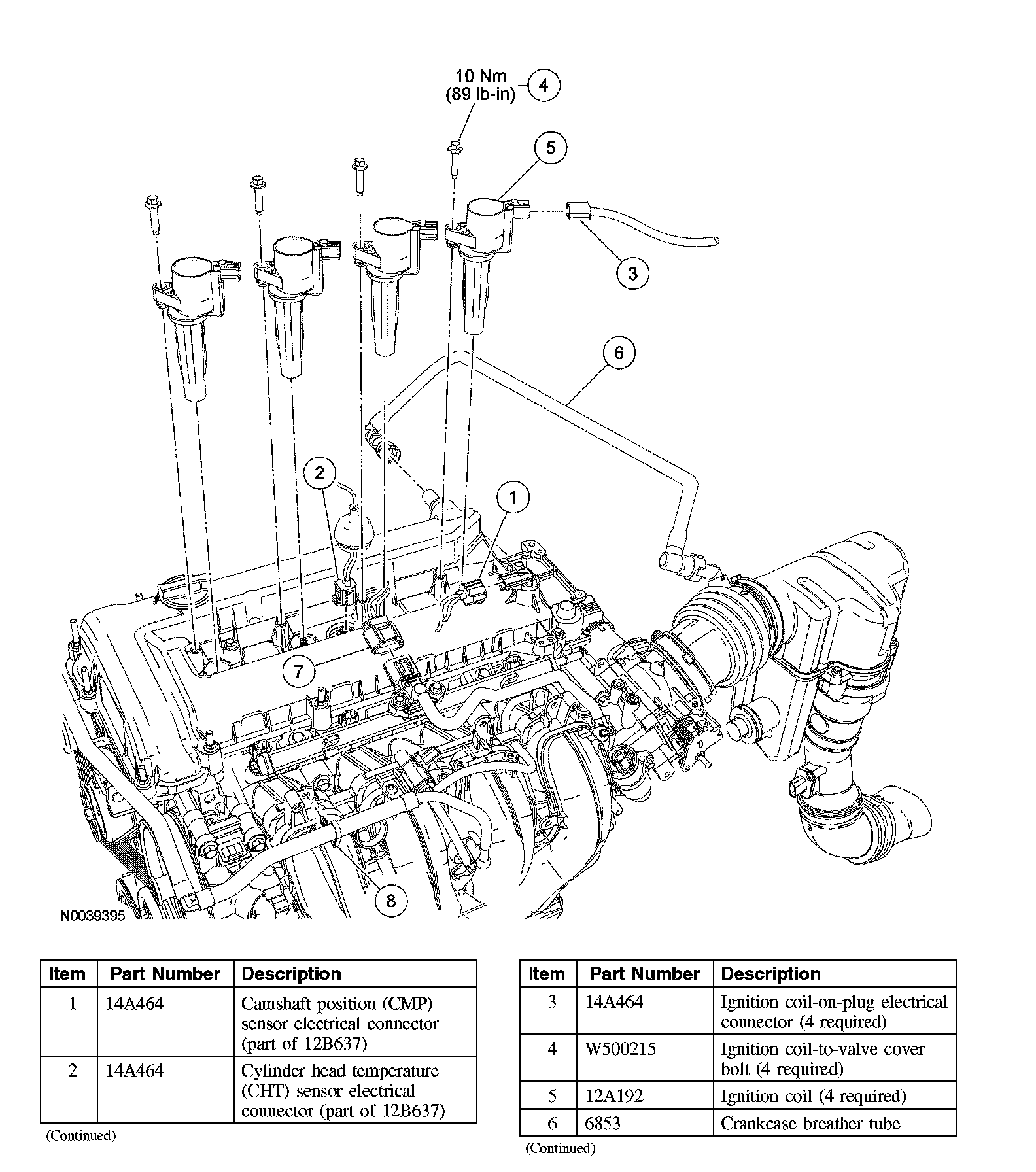 8. Install the ignition coils and the 4 ignition coil-to-valve cover bolts.