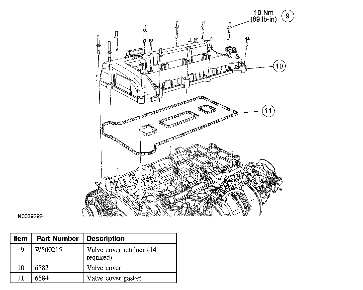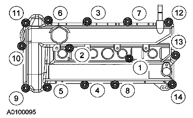 2. Install the valve cover, a new gasket and the 14 retainers.