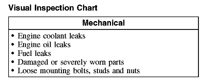 2. Visually inspect for obvious signs of mechanical damage. Refer to the following chart.