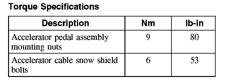 Accelerator Pedal: Specifications