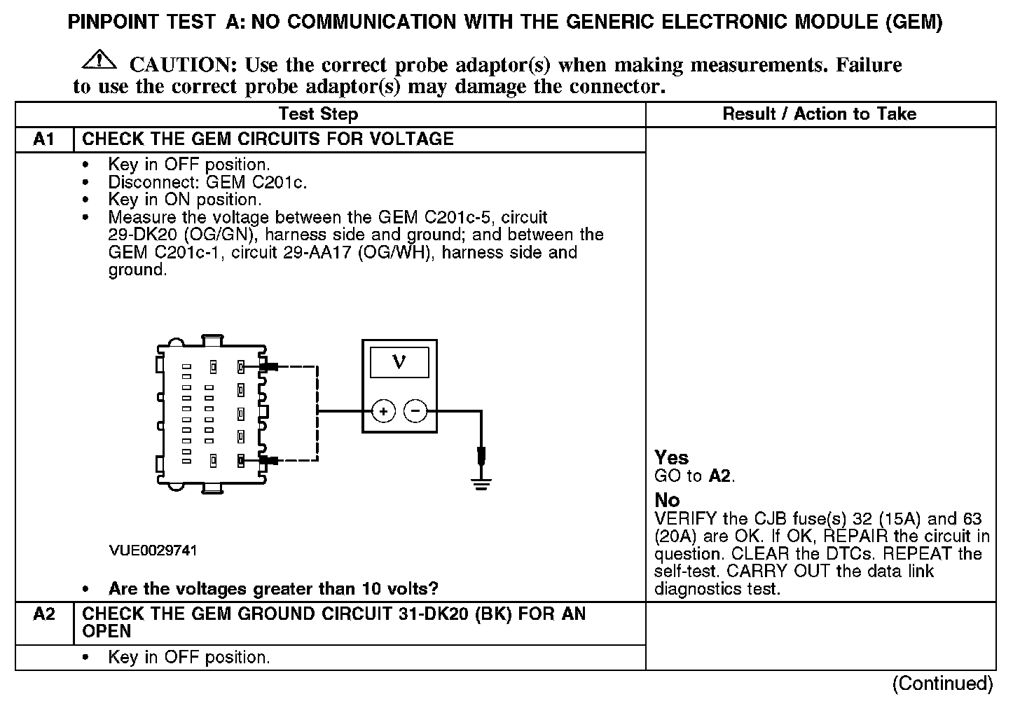 PINPOINT TEST A: NO COMMUNICATION WITH THE GENERIC ELECTRONIC MODULE (GEM)A1-A2: