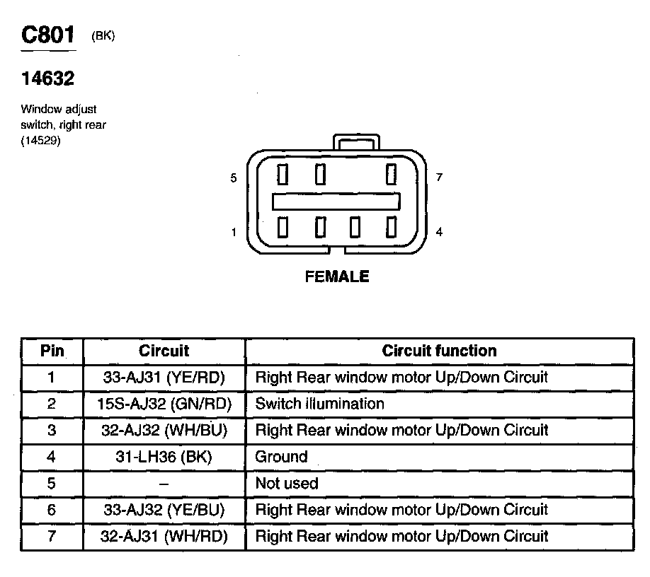 Window Adjust Switch, Right Rear