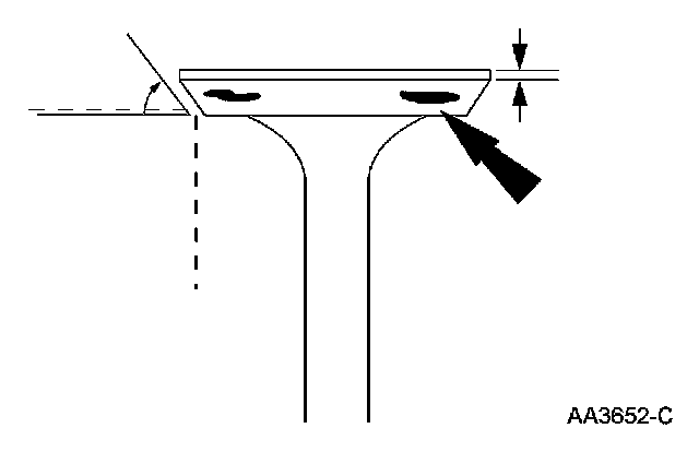 2. Inspect for abnormalities on the valve face and seat. Install a new cylinder head assembly if abnormalities are found.
