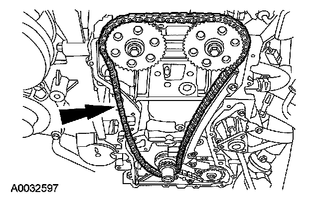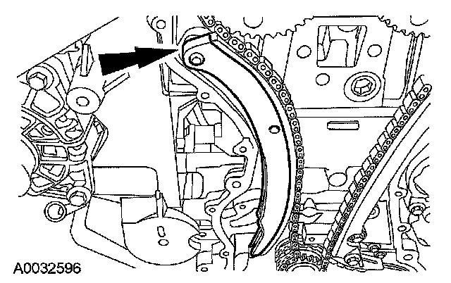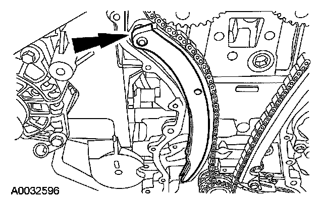 1 Compress the timing chain tensioner and insert a paper clip into the hole.