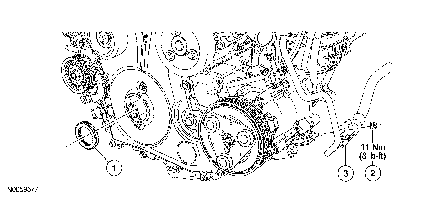 2. NOTE: The engine front cover must be installed and the bolts tightened within 4 minutes of applying the silicone gasket and sealant.