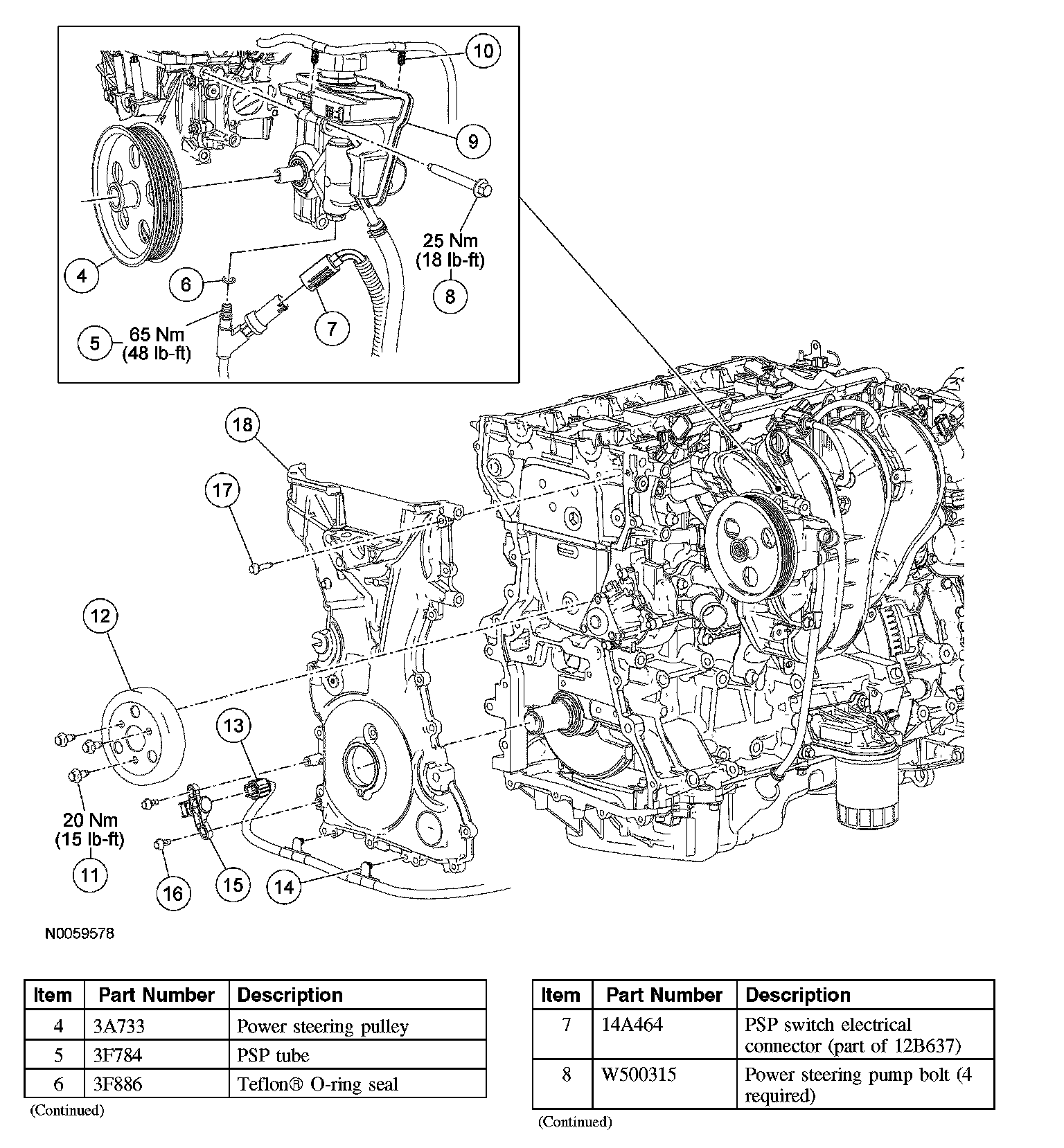 9. NOTE: A new Teflon O-ring seal must be installed any time the PSP tube is disconnected from the power steering pump.
