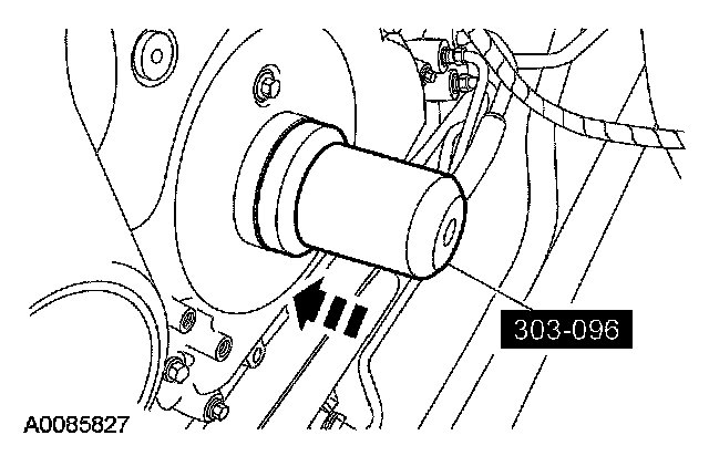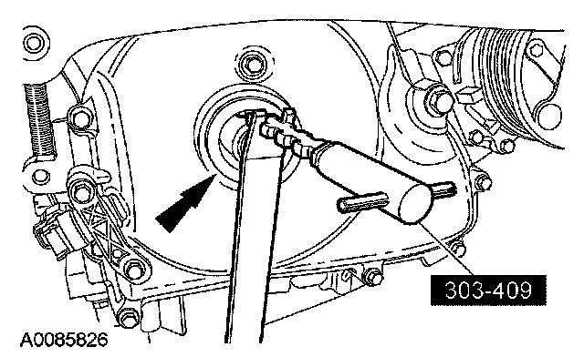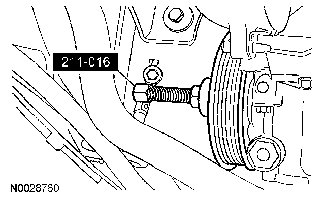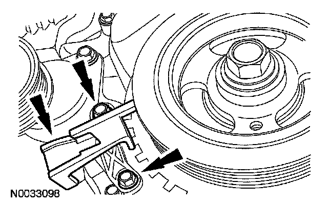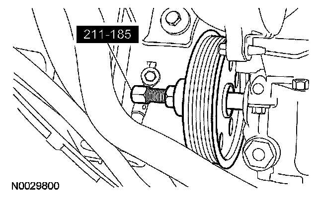 CAUTION: Do not loosen or remove the crankshaft pulley bolt without first installing the special tools as instructed in this procedure. The crankshaft pulley and the crankshaft timing sprocket are not keyed to the crankshaft. The crankshaft, the crankshaft sprocket and the pulley are fitted together by friction, using diamond washers between the flange faces on each part. For that reason, the crankshaft sprocket and the pulley are fitted together by friction, using diamond washers between the flange faces on each part. For that reason, the crankshaft sprocket is also unfastened if you loosen the pulley bolt. Before any repair requiring loosening or removal of the crankshaft pulley bolt, the crankshaft and camshafts must be locked in place by the special service tools, otherwise severe engine damage can occur.