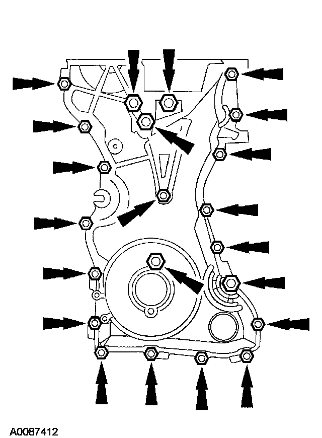3. Install the engine front cover. Tighten the bolts in the sequence shown, to the following specifications: