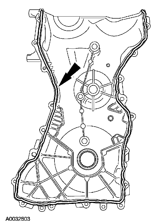 Apply a 2.5 mm (0.10 inch) bead of silicone gasket and sealant to the cylinder head and oil pan joint areas. Apply a 2.5 mm (0.10 inch) bead of silicone gasket and sealant to the front cover.