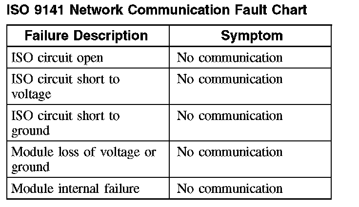 ISO 9141 Network Communication Fault Chart:
