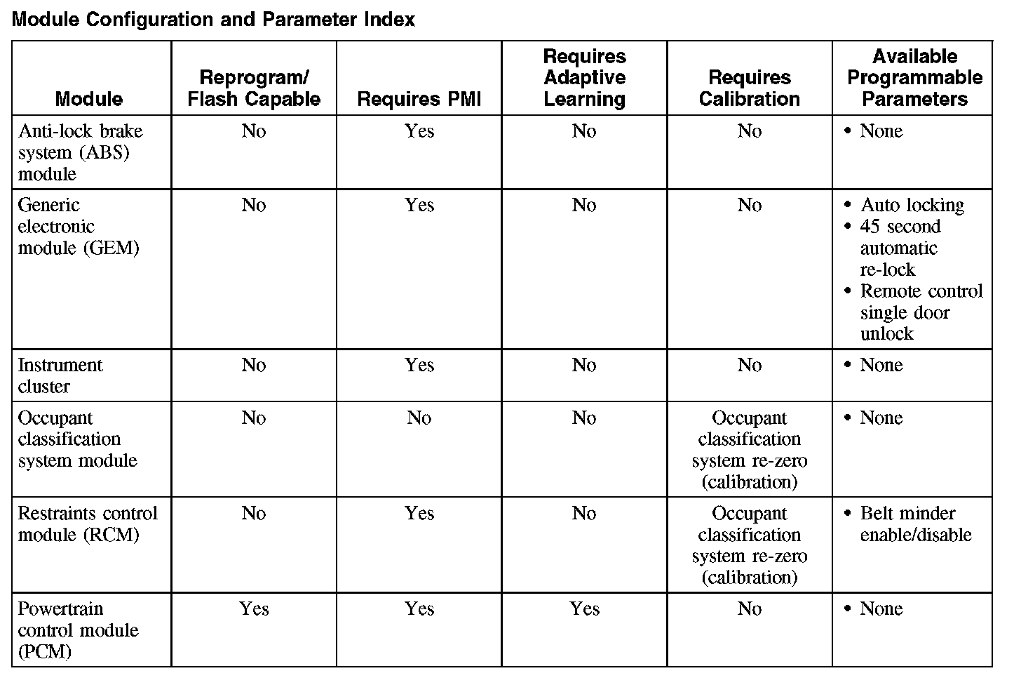 Programmable parameters are customer preference items that may be modified by the dealer via scan tool or in some cases modified by the customer following a procedure listed in the vehicle Owner's Literature. While many configuration options may exist for a module, only a few of these options are programmable parameters.