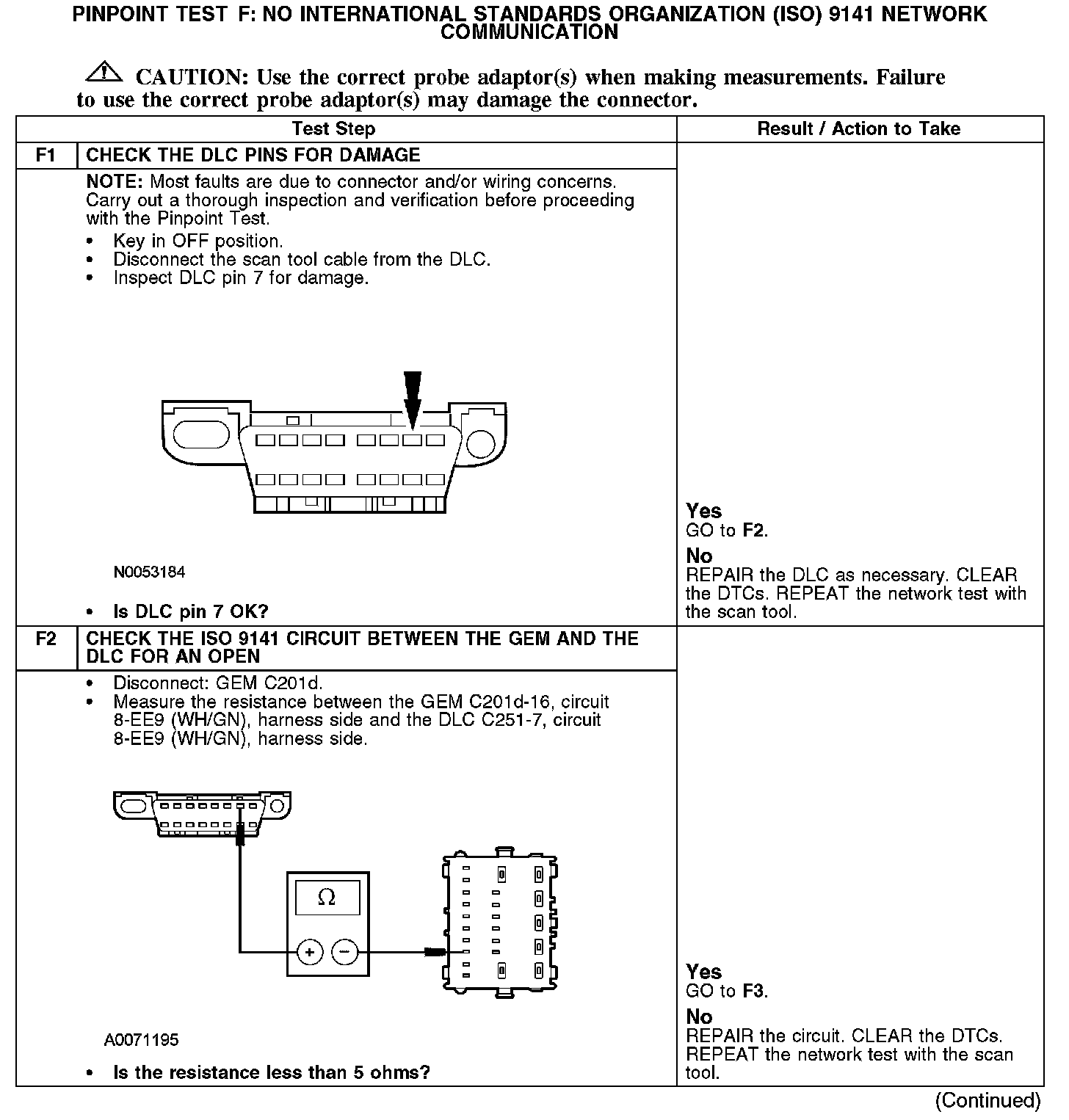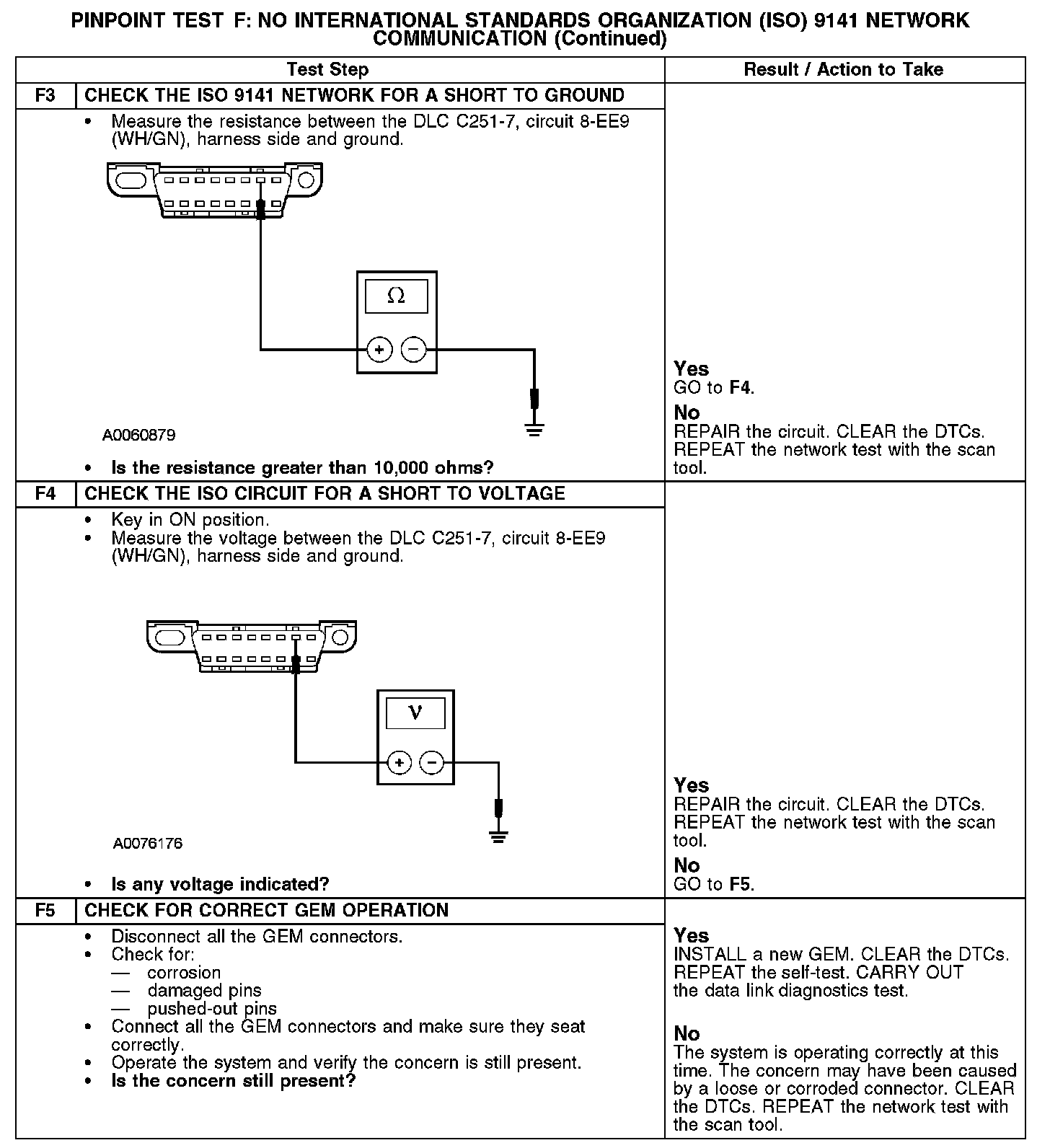 PINPOINT TEST F: NO INTERNATIONAL STANDARDS ORGANIZATION (ISO) 9141 COMMUNICATIONS NETWORK COMMUNICATIONF1-F2:
