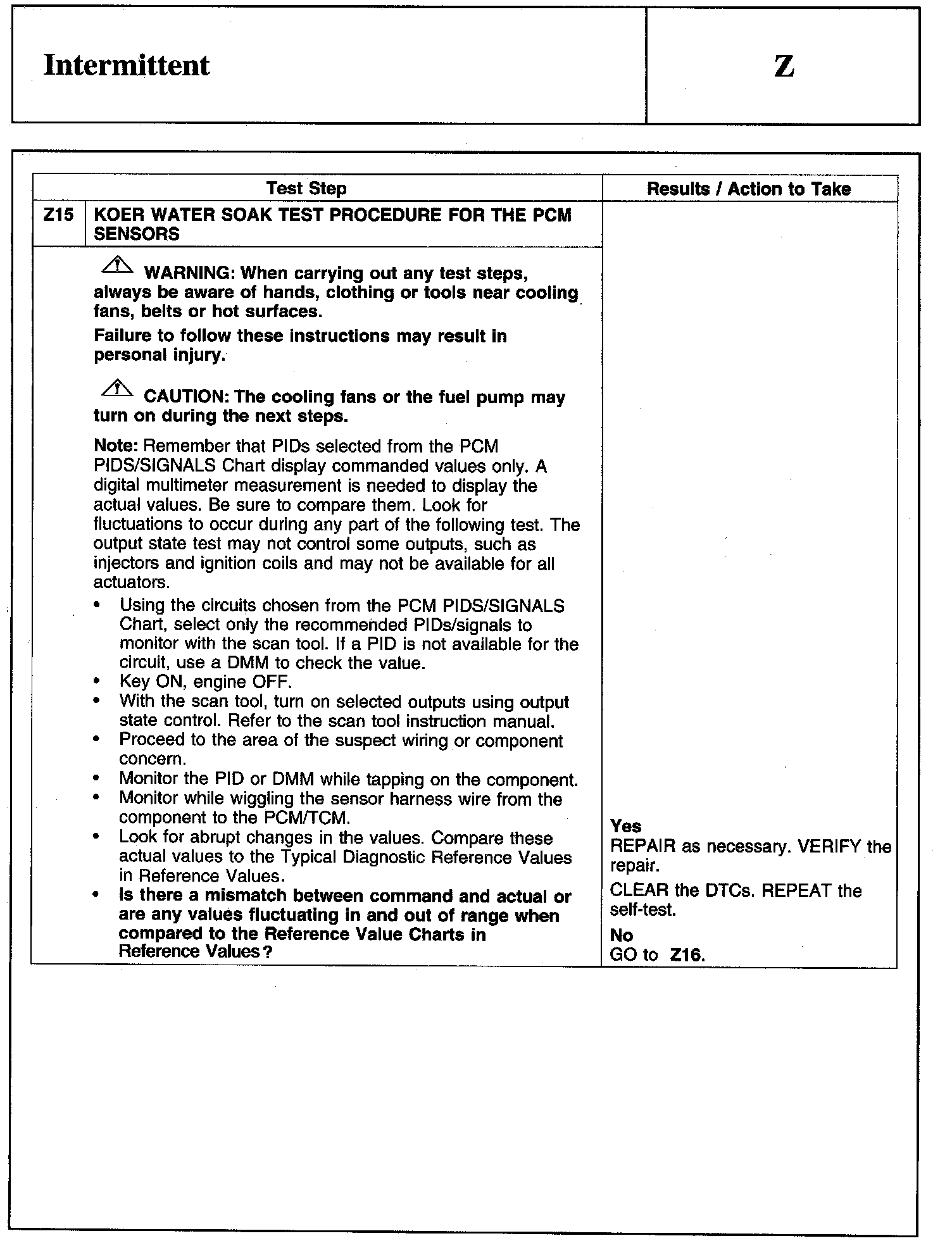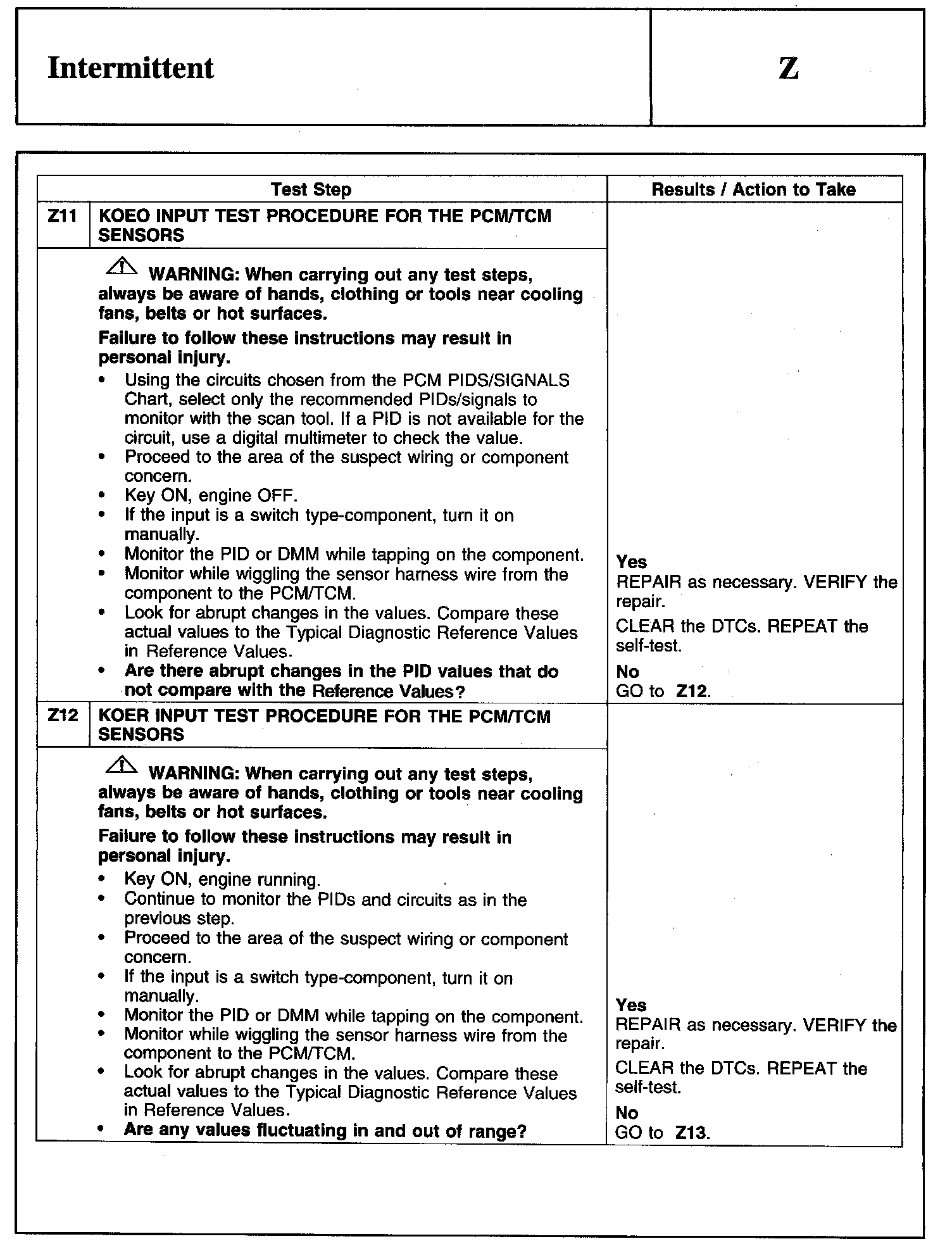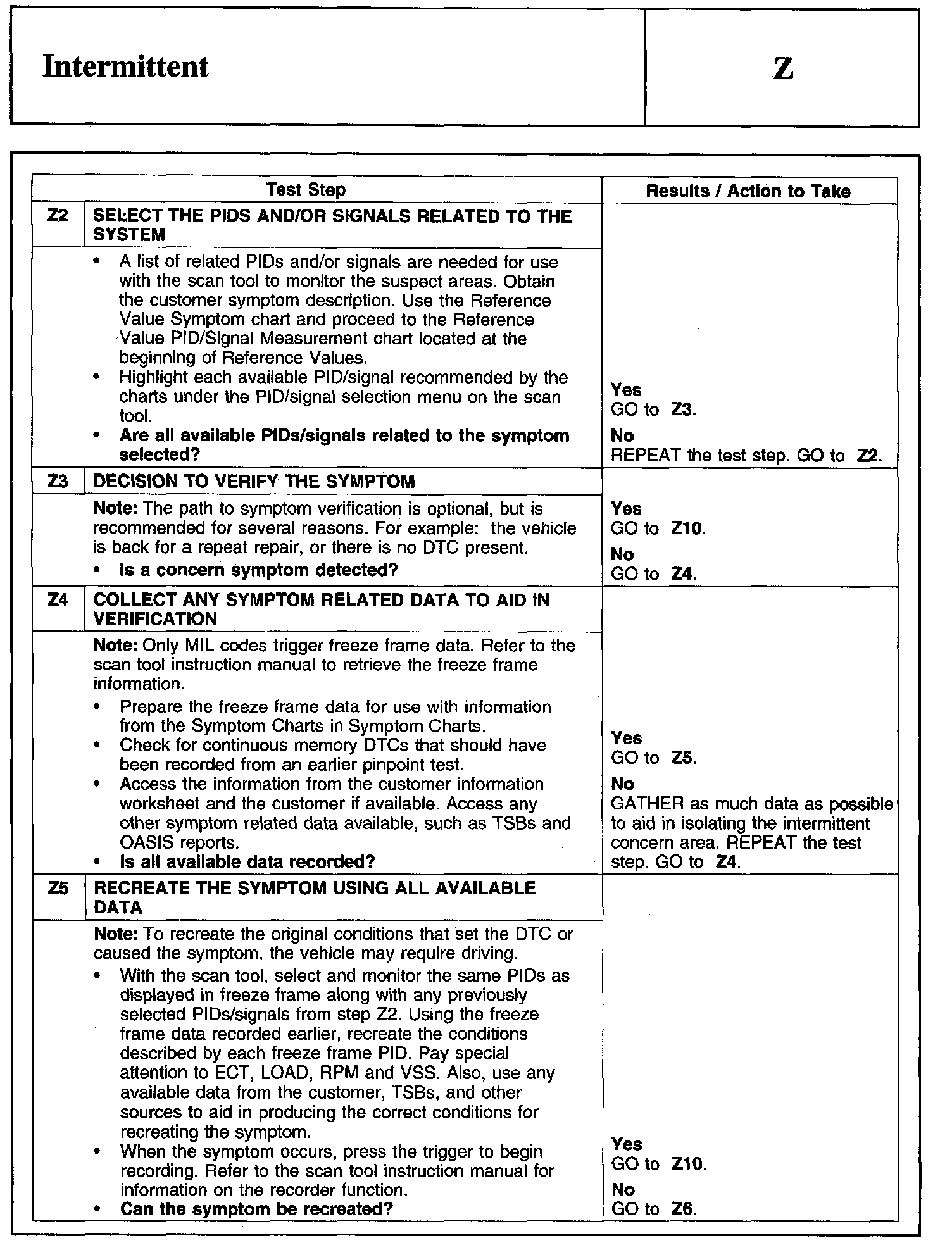 PINPOINT TEST Z: INTERMITTENT