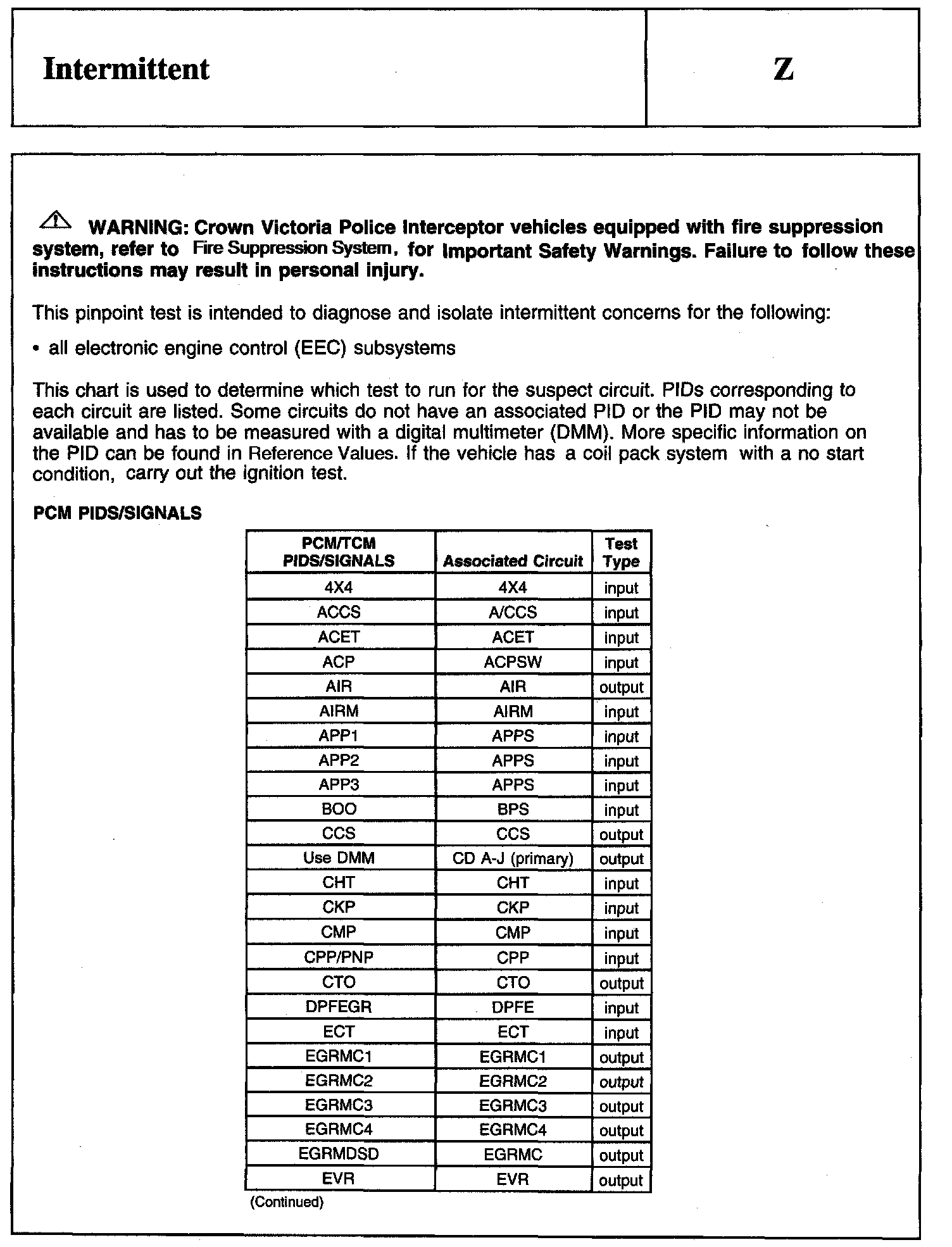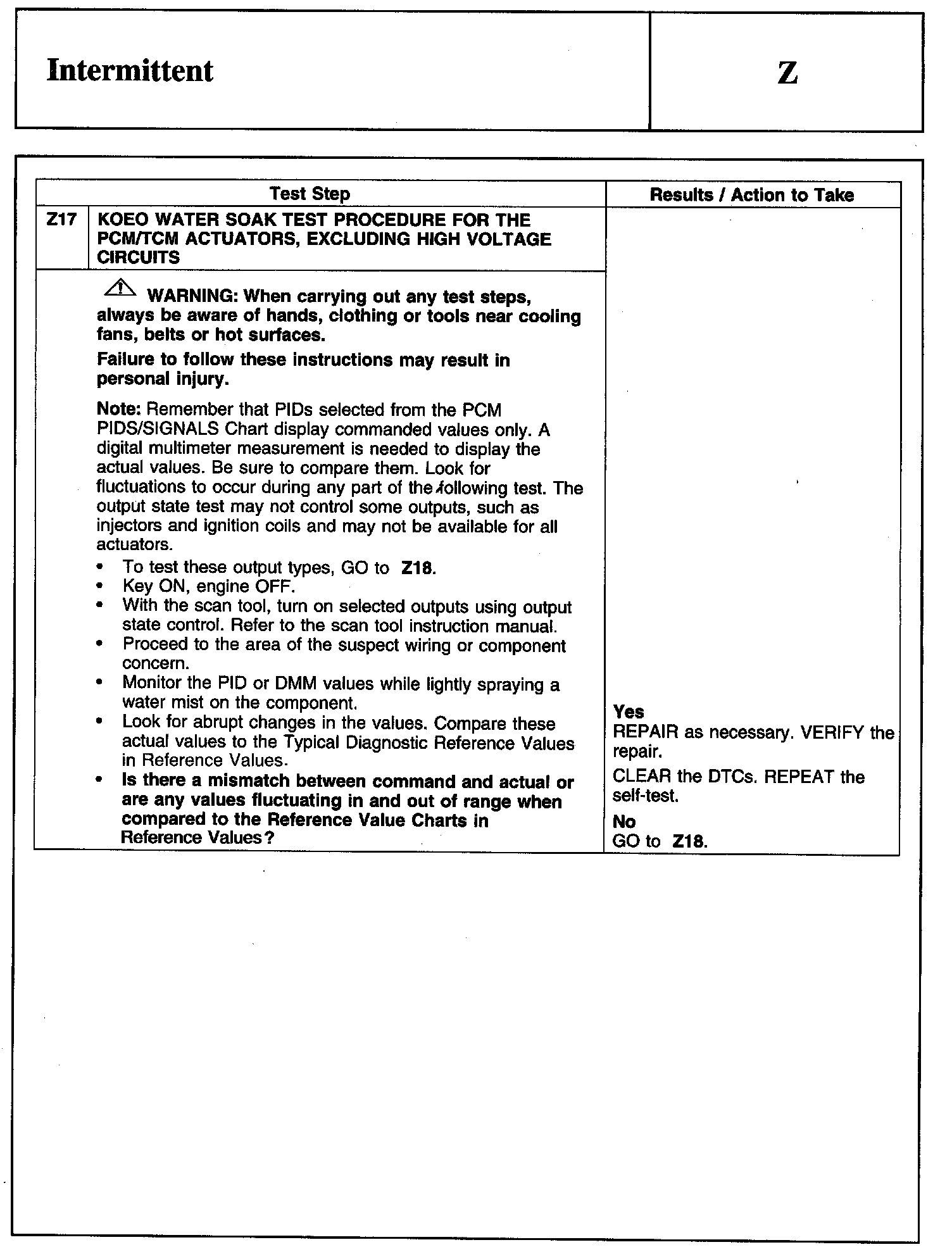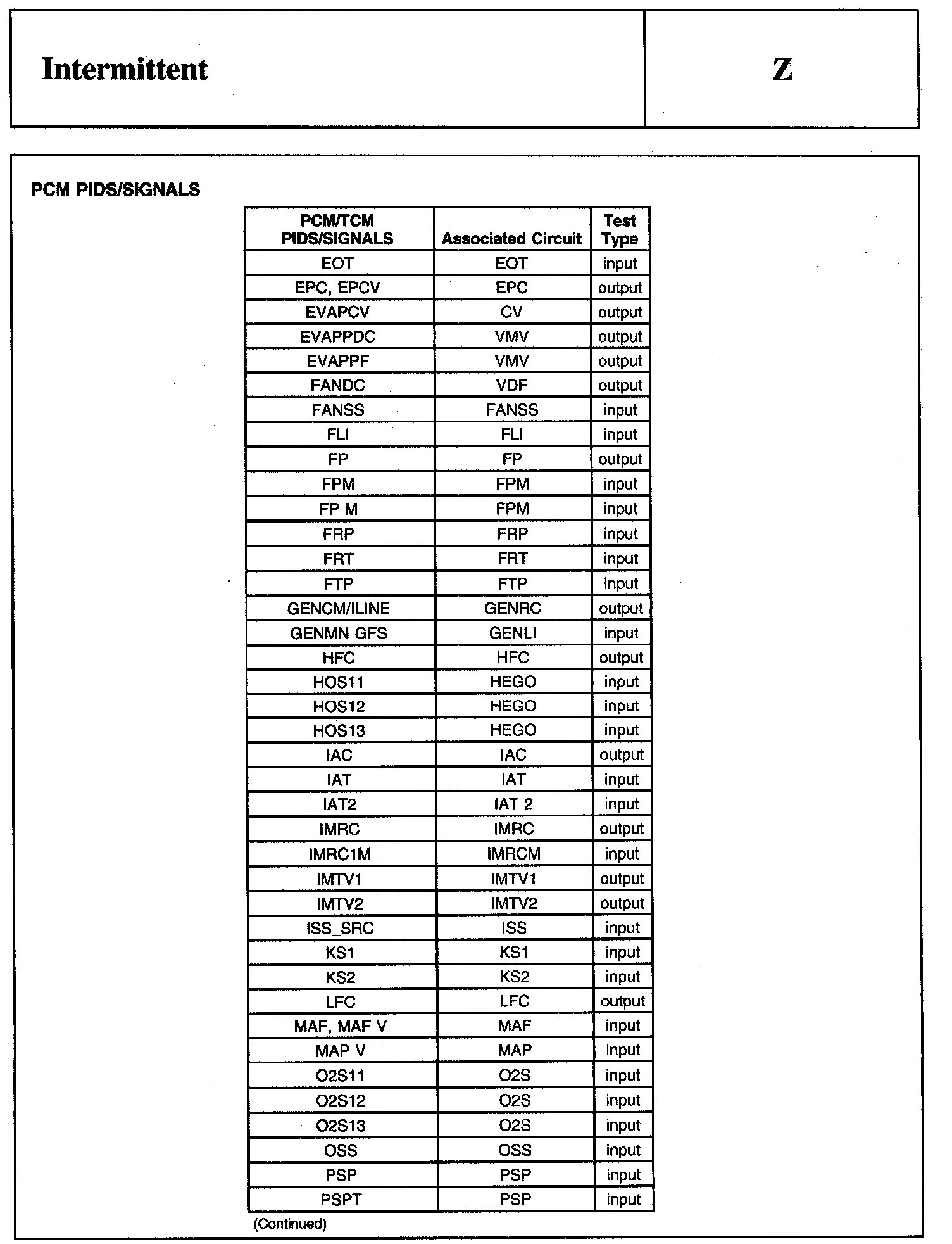PINPOINT TEST Z: INTERMITTENT