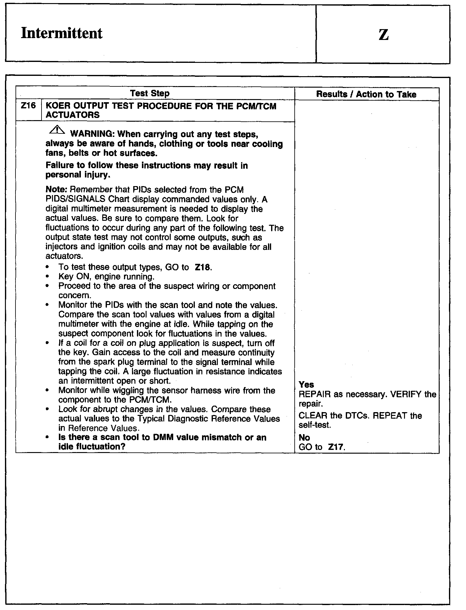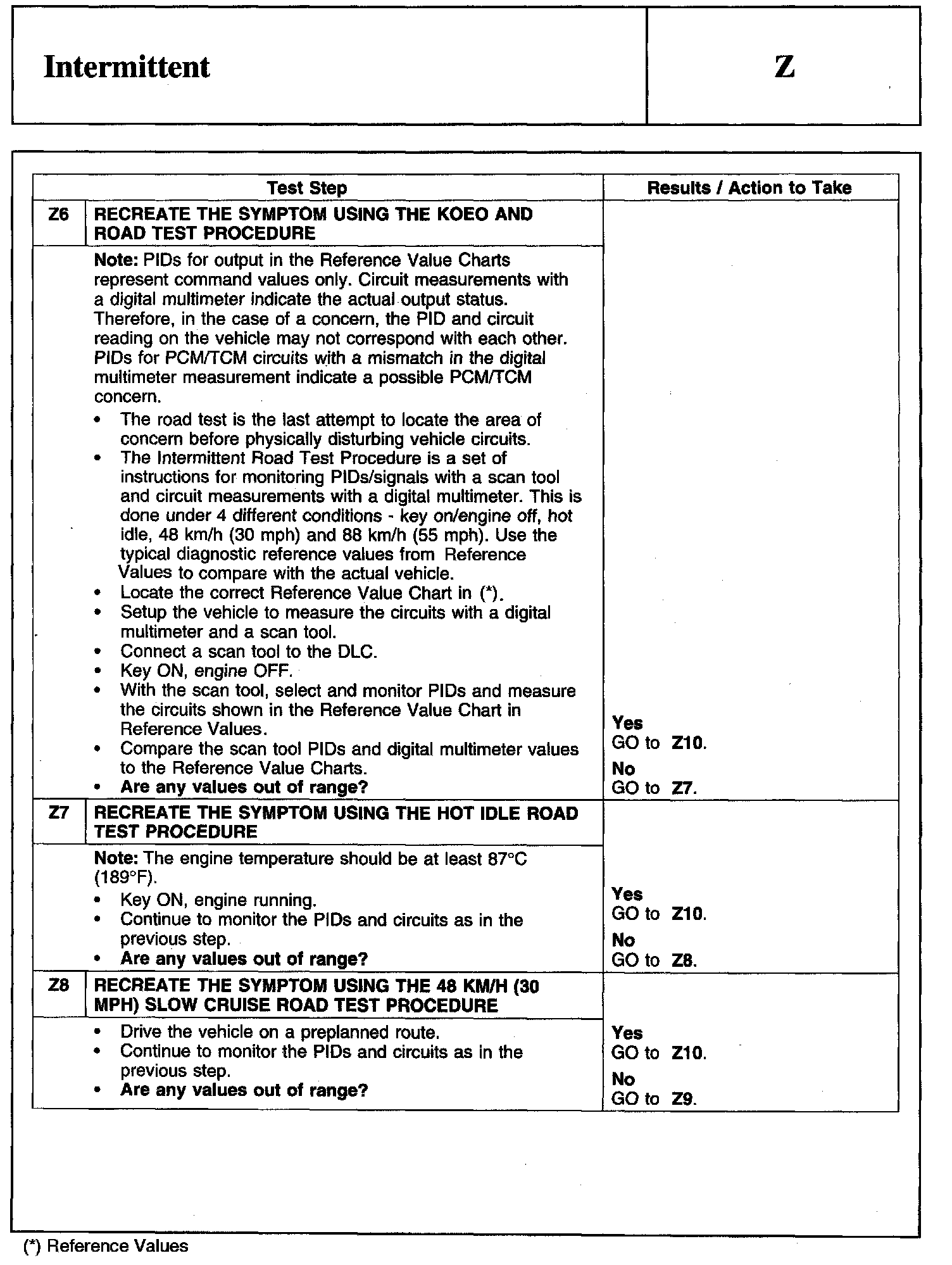 Test Z: Intermittent