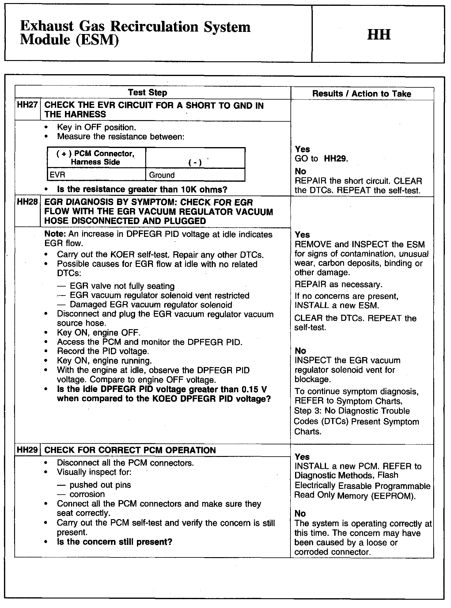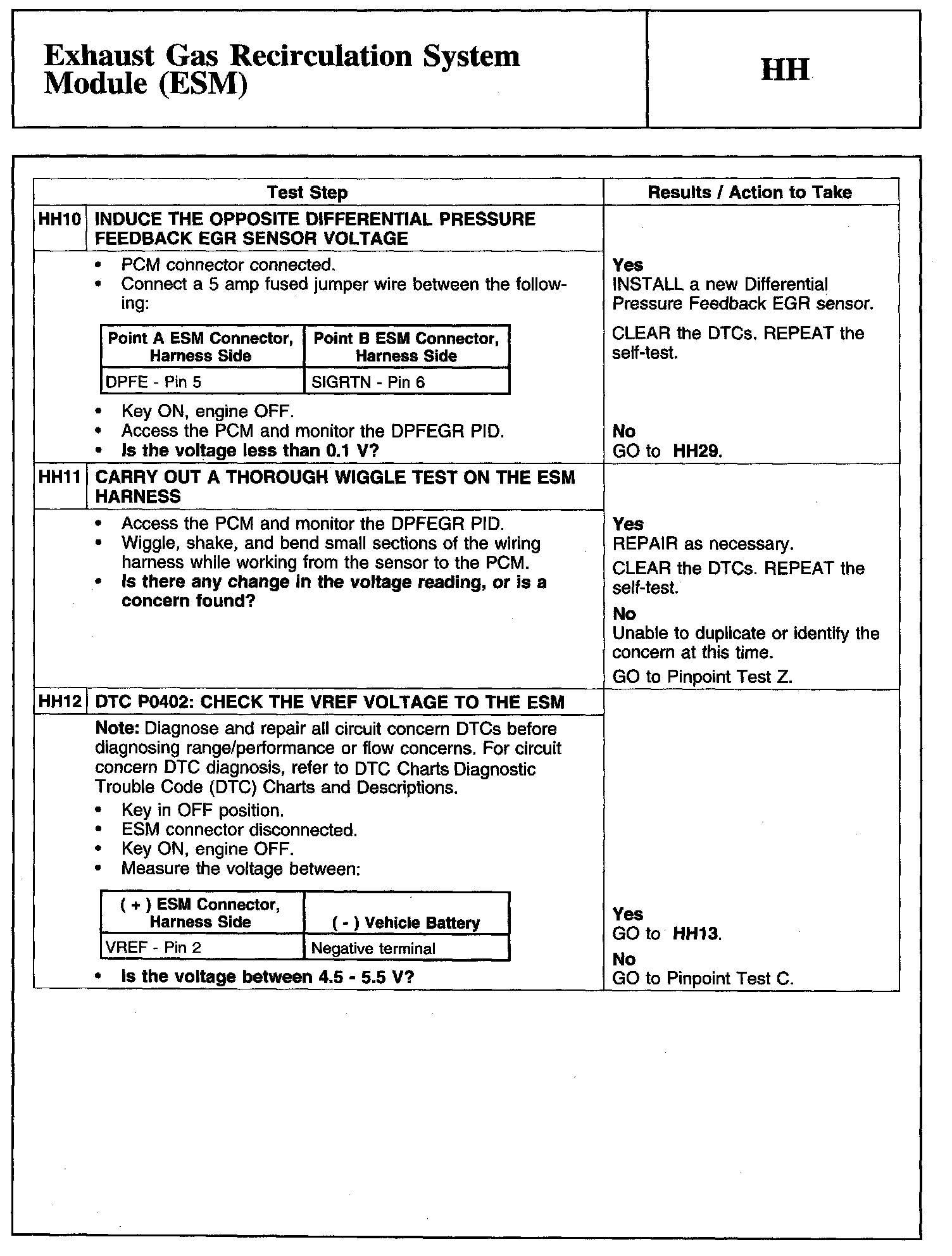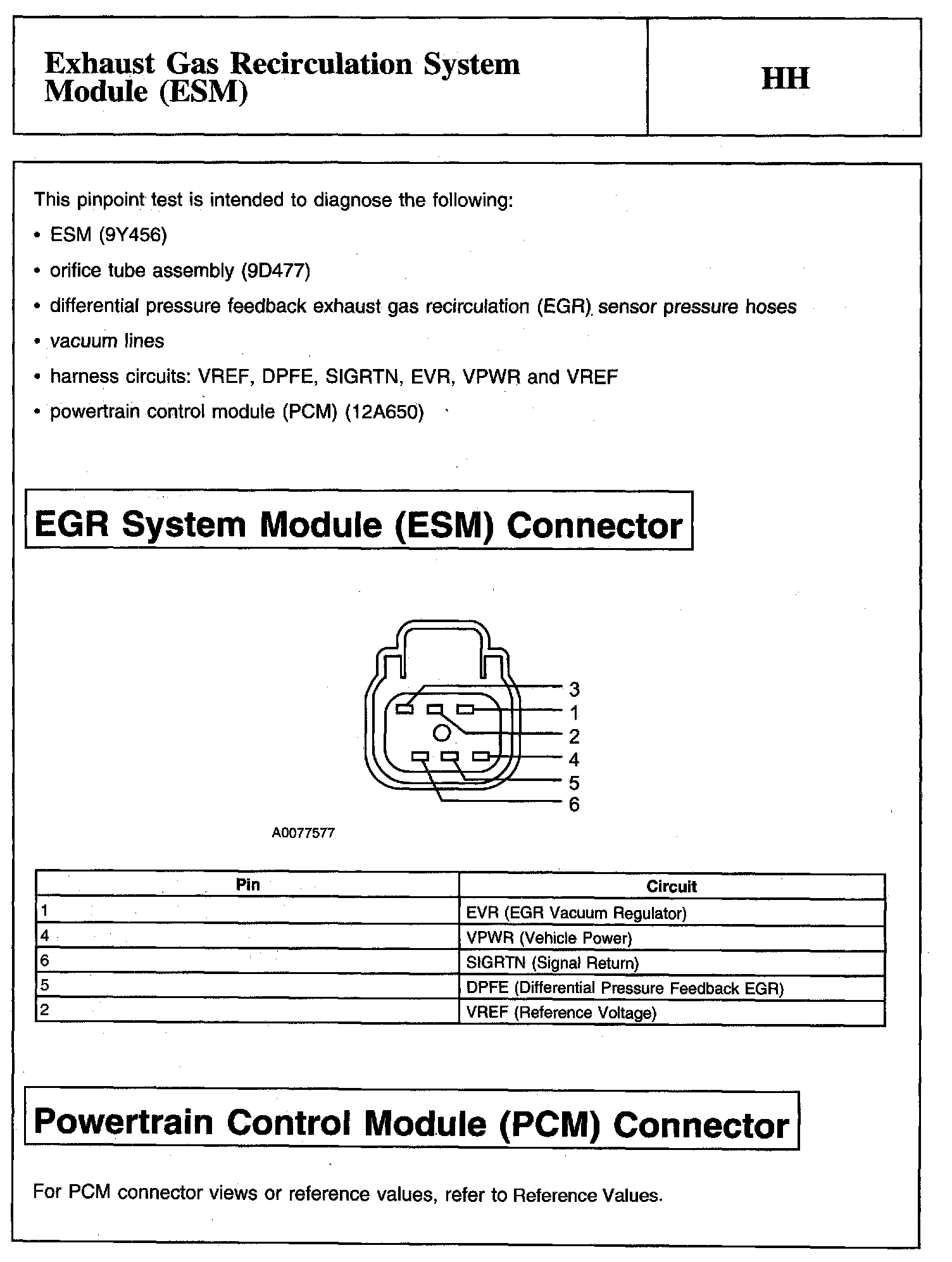 PINPOINT TEST HH: EXHAUST GAS RECIRCULATION SYSTEM MODULE (ESM)EGR System Module (ESM) Connector And Powertrain Control Module (PCM) Connector: