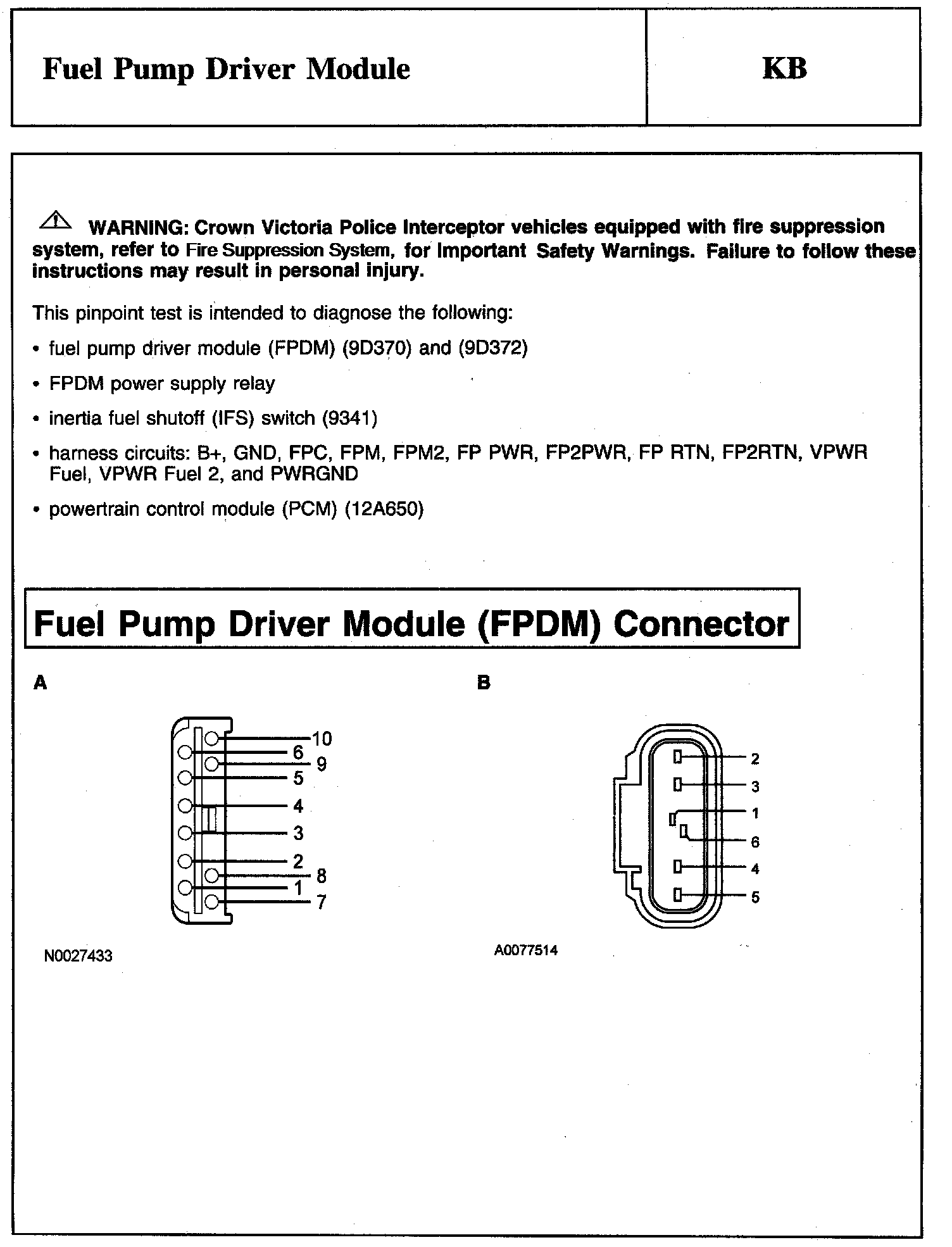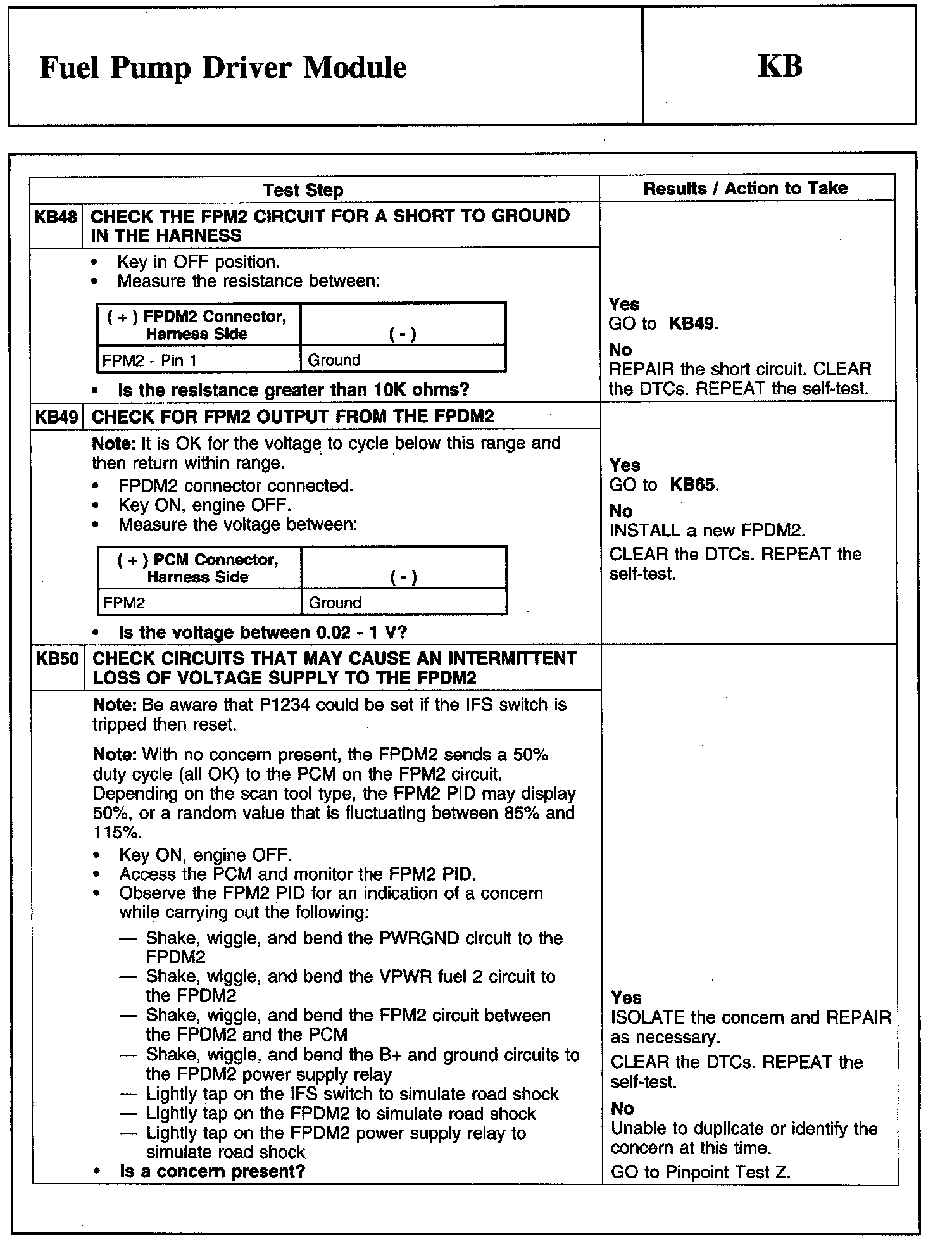 PINPOINT TEST KB: FUEL PUMP DRIVER MODULE