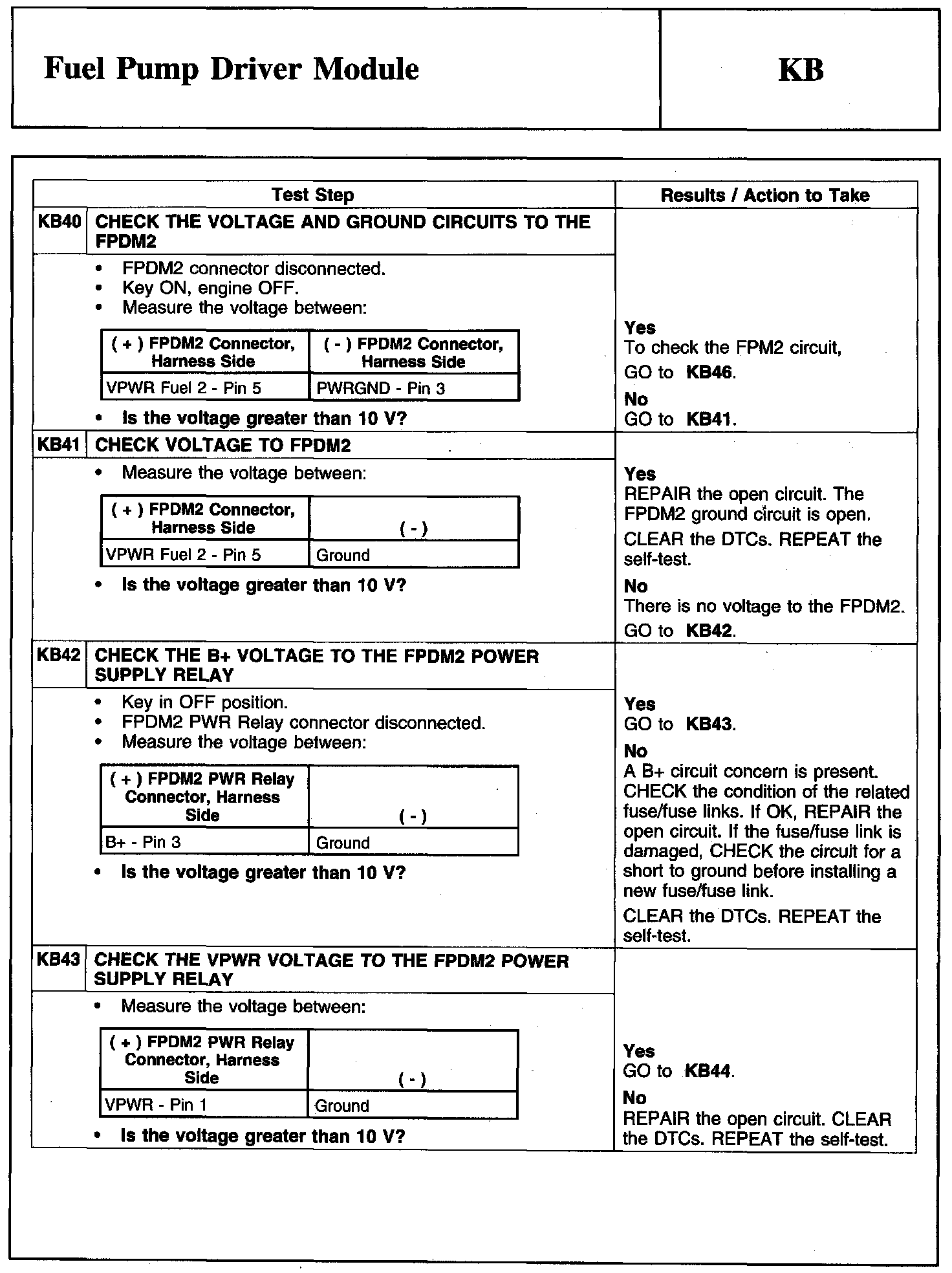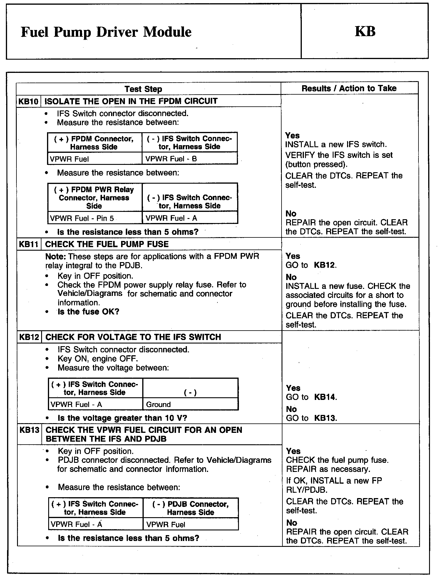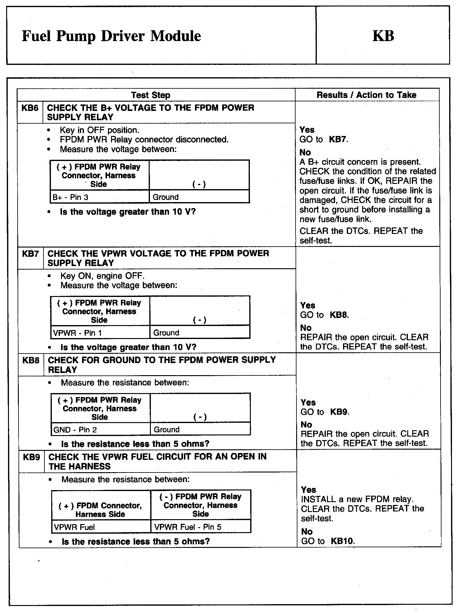 Tests KB: Fuel Pump Driver Module