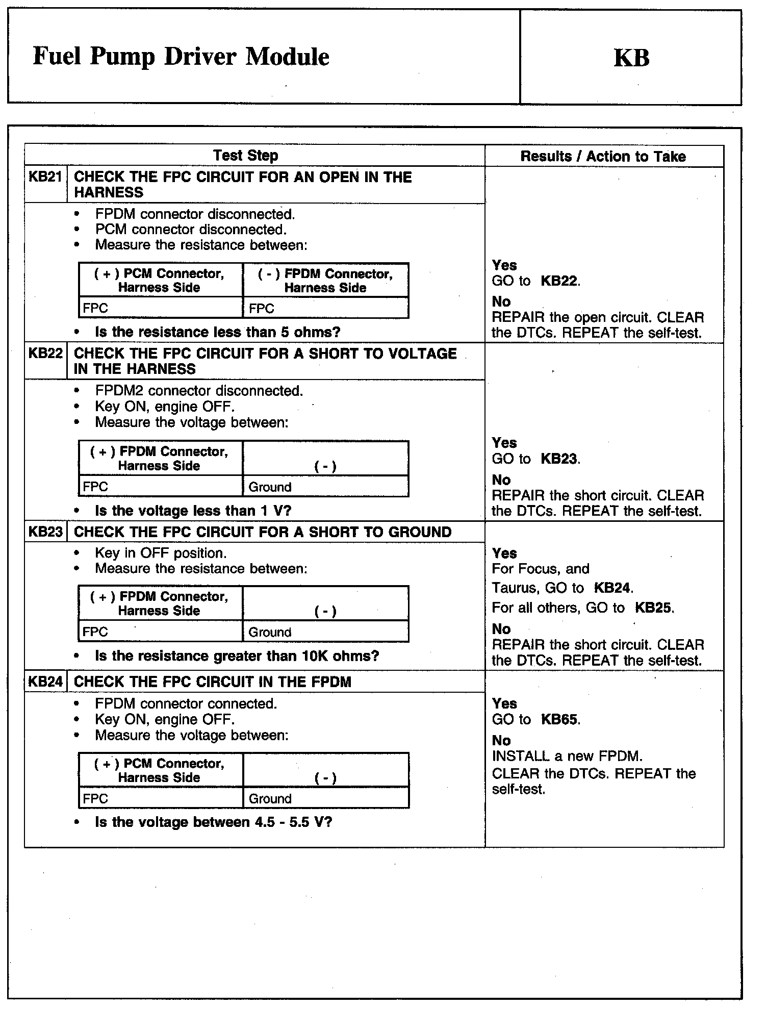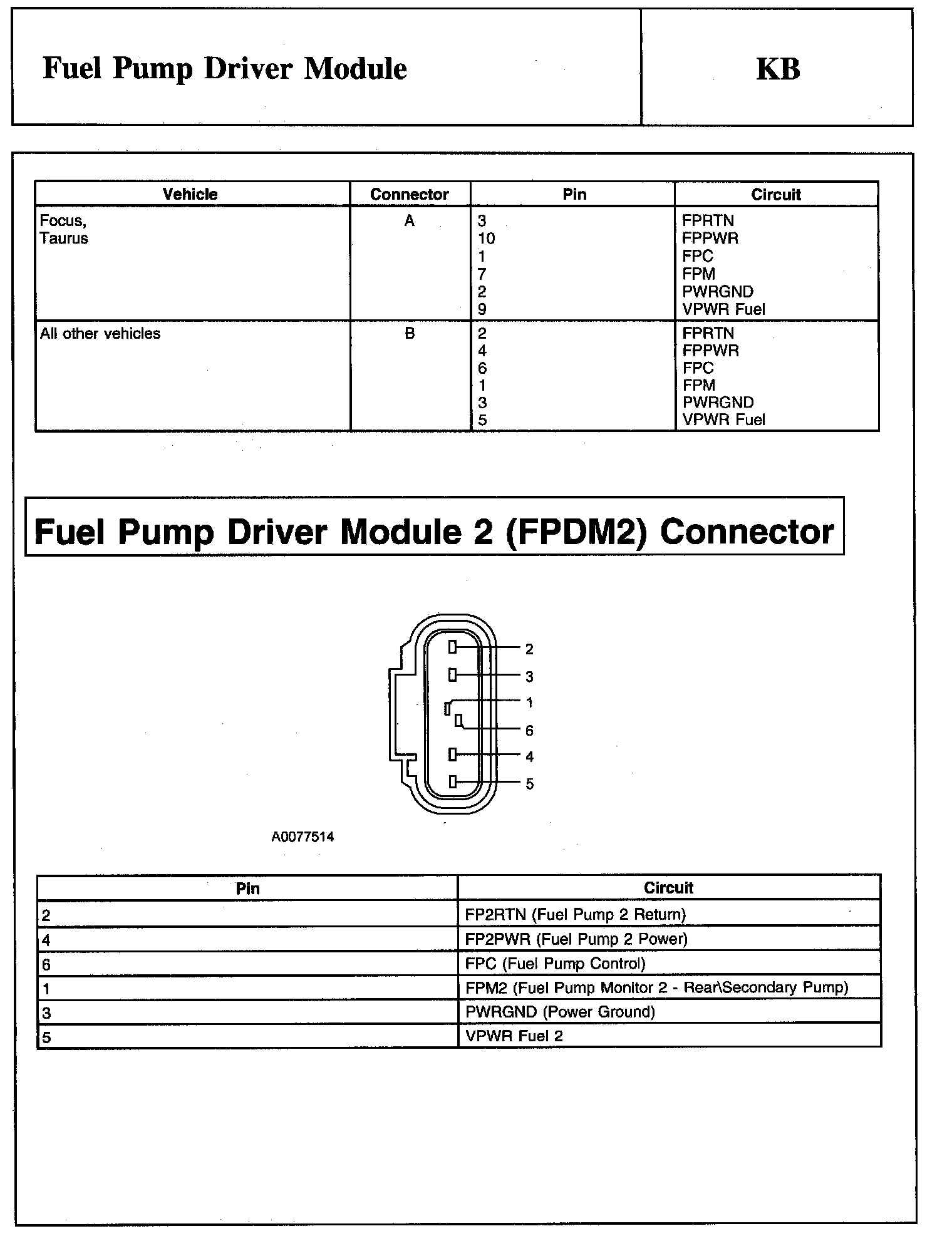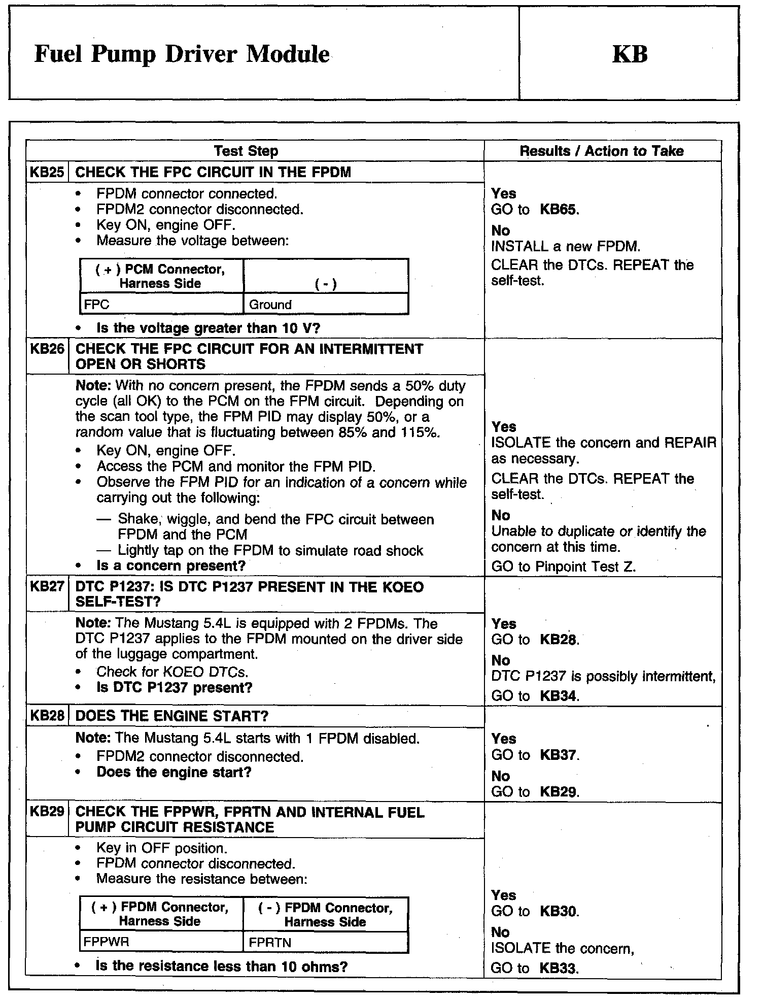 Tests KB: Fuel Pump Driver Module