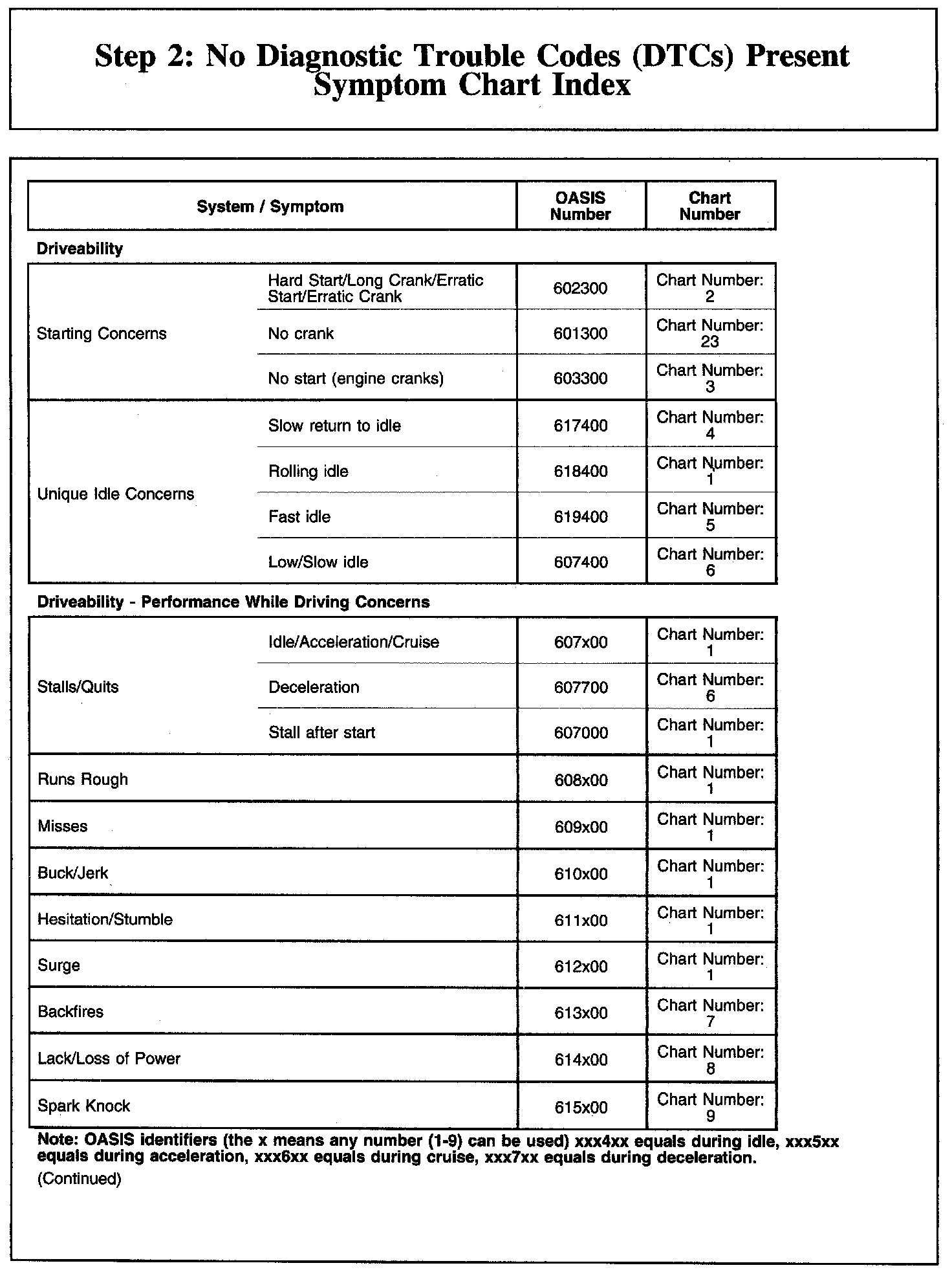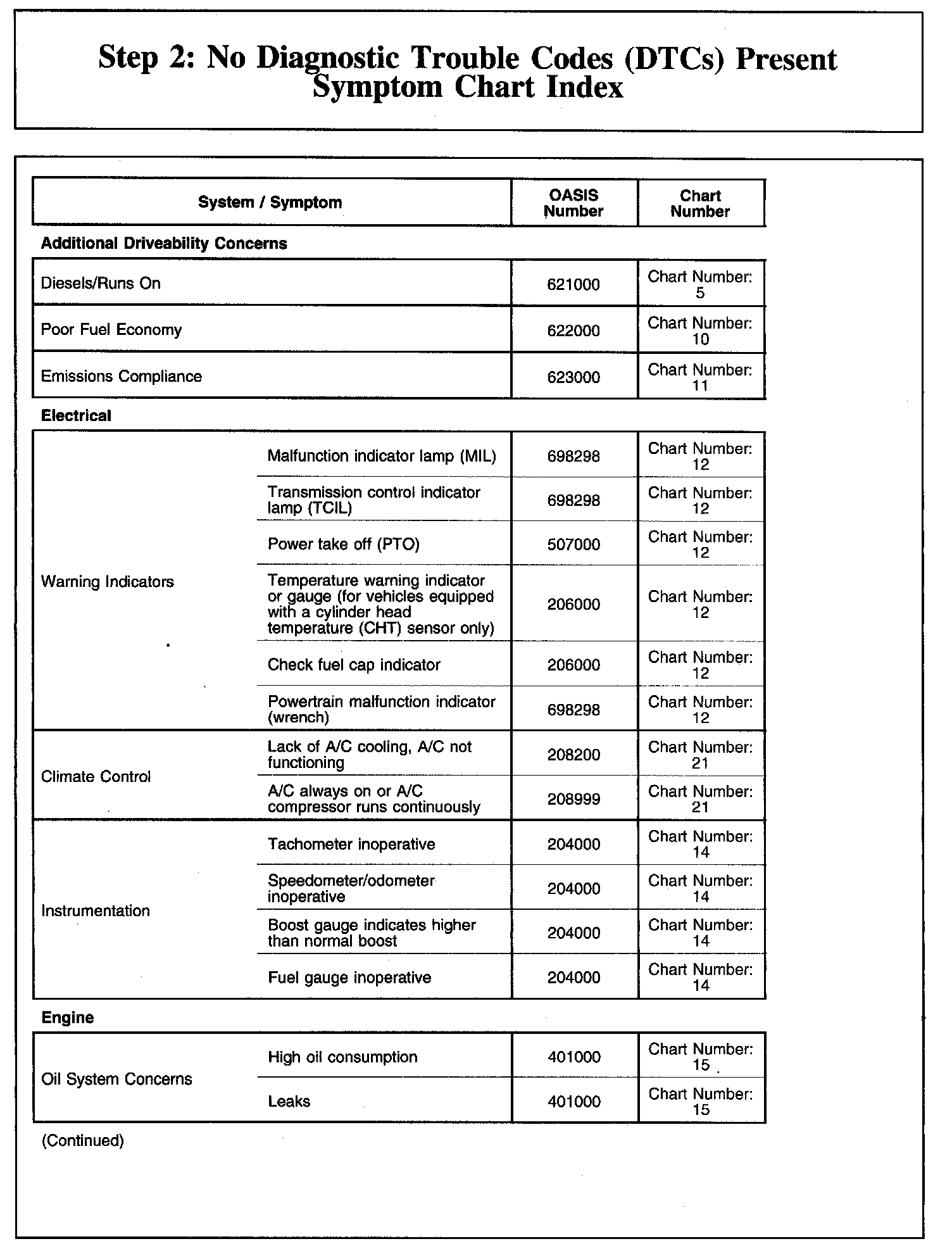Step 2: No Diagnostic Trouble Codes (DTCs) Present Symptom Chart Index