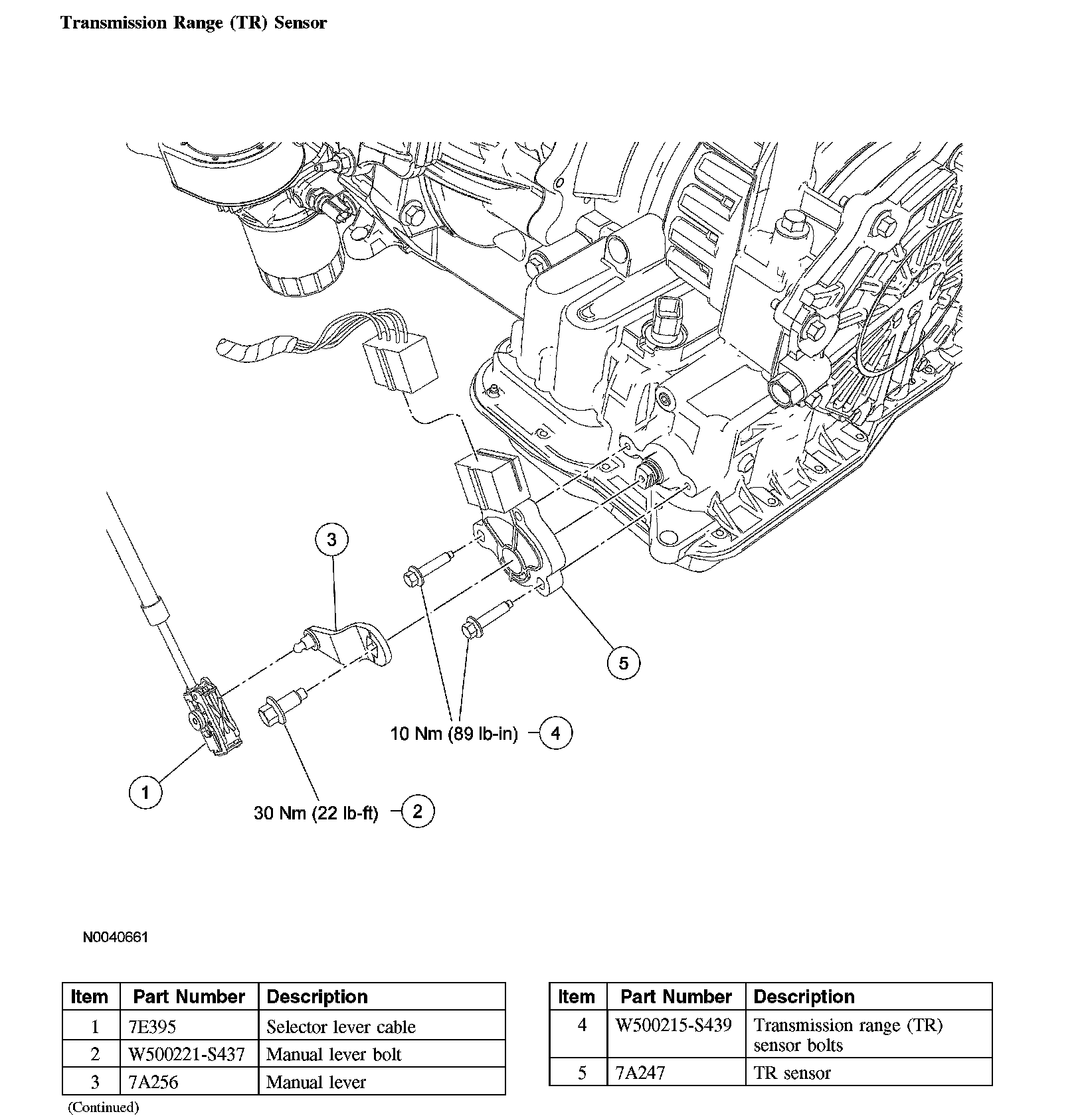 Remove the TR sensor (automatic transaxle shown removed for clarity).