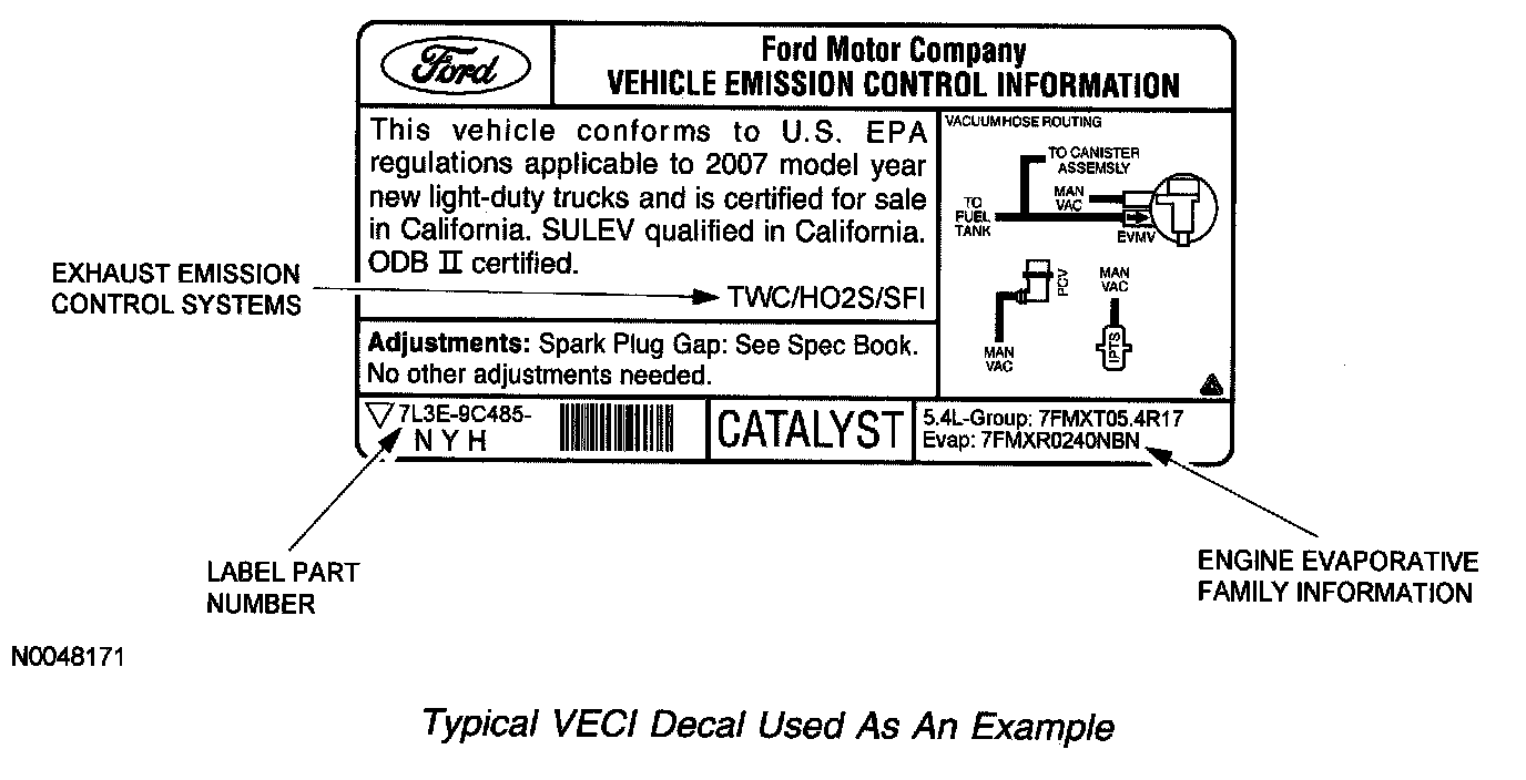 Each vehicle has a VECI decal containing emission control information that applies specifically to the vehicle and engine. The specifications on the decal are critical to repairing the emissions systems.