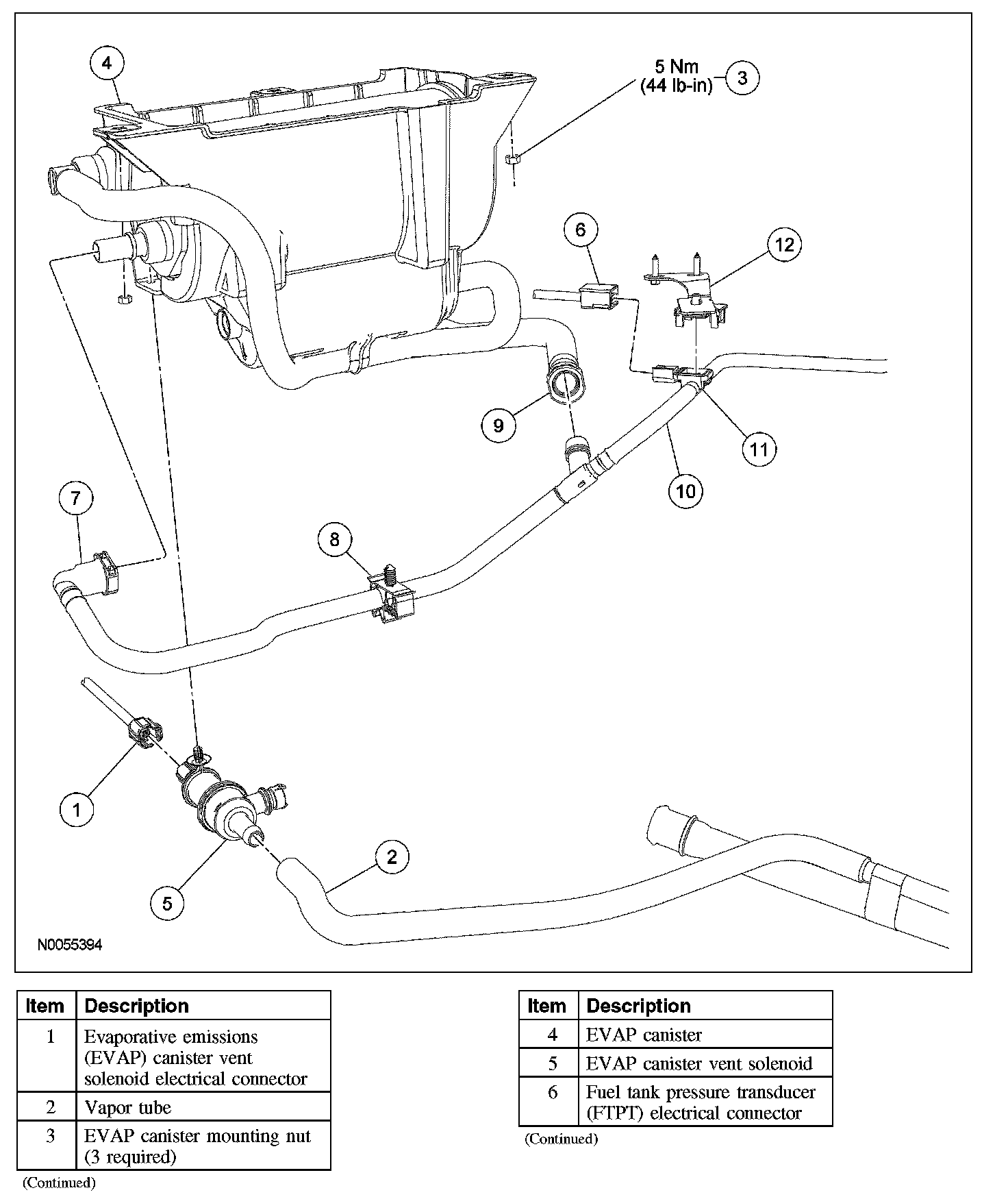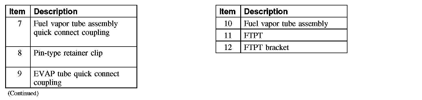1. CAUTION: Do not remove the evaporative emission (EVAP) hoses from the EVAP canister as damage can occur to the EVAP canister vent solenoid or the quick connect couplings. The fuel tank pressure transducer (FTPT) and tube is serviced as a complete assembly.