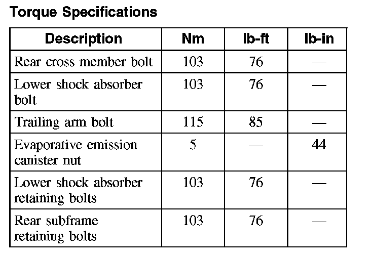 Torque Specifications: