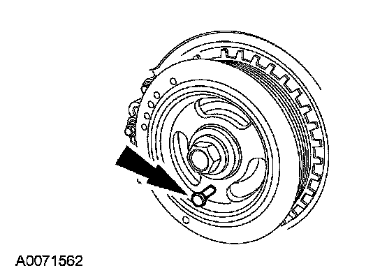 6. Turn the crankshaft pulley bolt to position the No. 1 cylinder at top dead center and install the special tool.