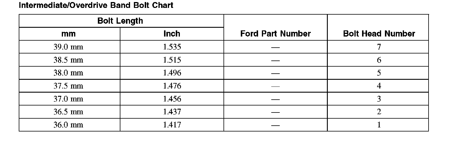 Intermediate/Overdrive Band Bolt Chart