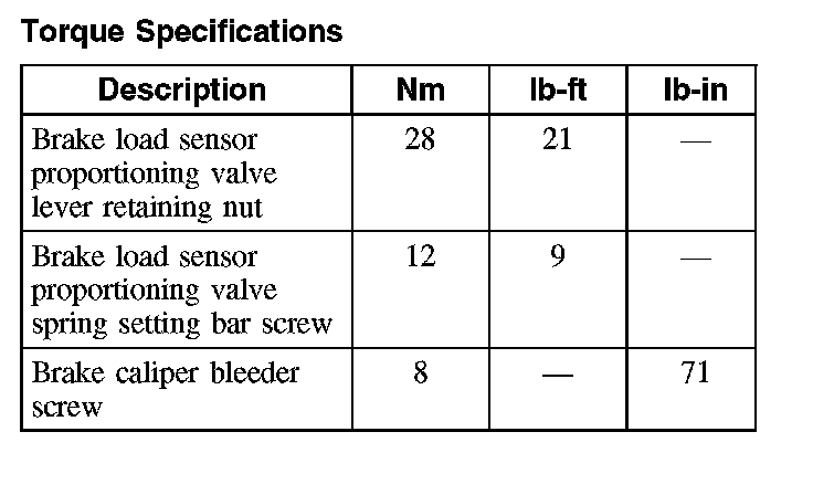 Torque Specifications: