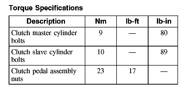 Torque Specifications: