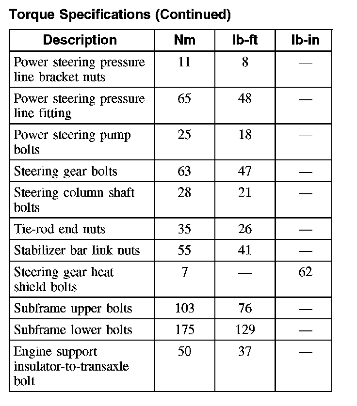 Torque Specifications (Continued):