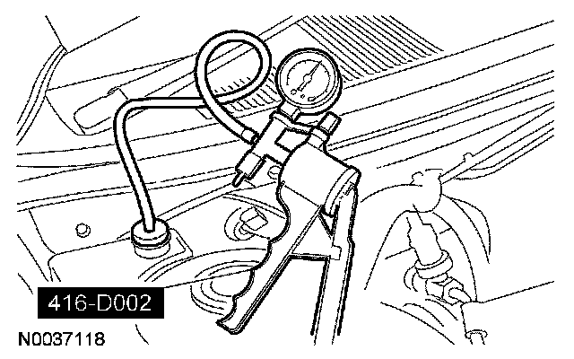 ^ Switch OFF the engine and apply a vacuum of 68-85 kPa (20-25 in-Hg. Maintain the vacuum (minimum of 5 minutes) until the air is evacuated from the system.