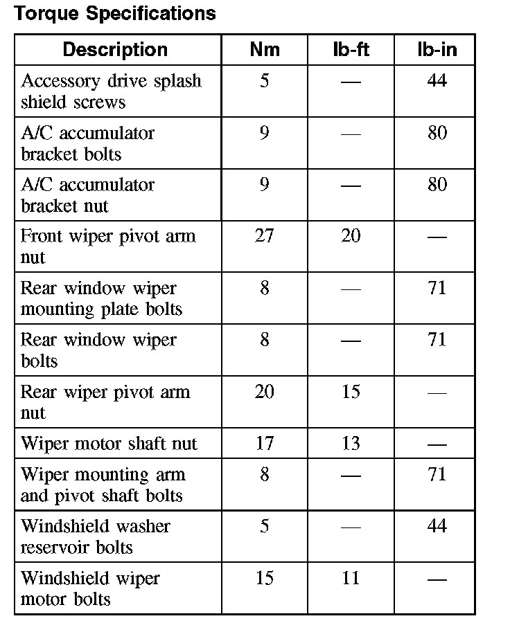 Wiper and Washer Systems: Specifications
