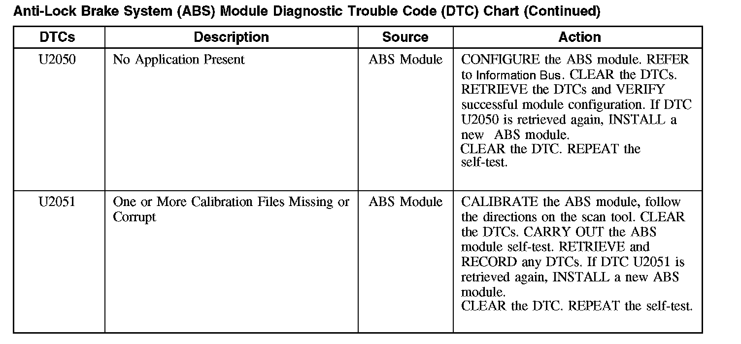 Anti-Lock Brake System (ABS) Module Diagnostic Trouble Code (DTC) Chart