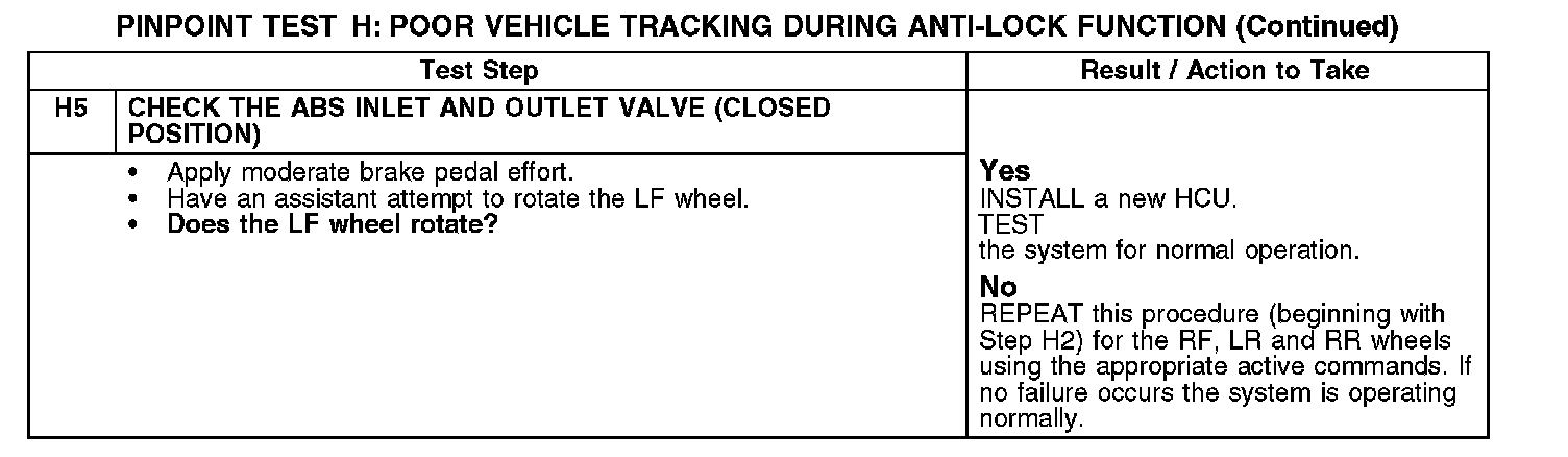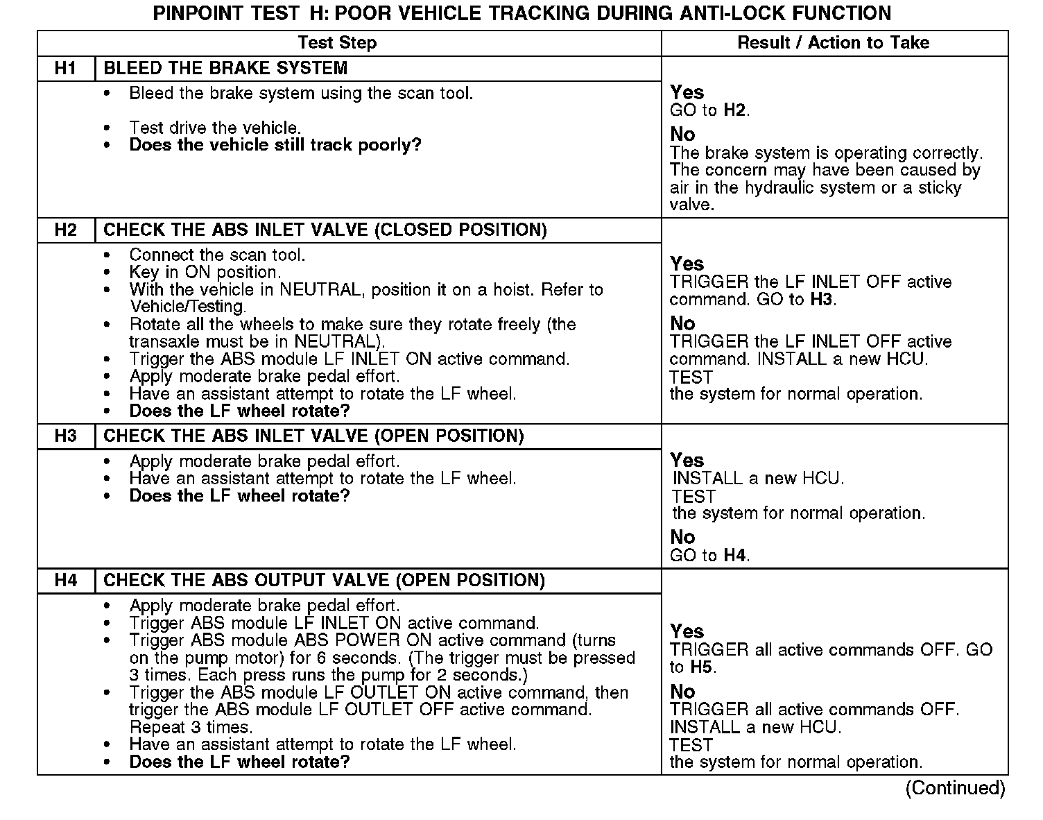 PINPOINT TEST H: POOR VEHICLE TRACKING DURING ANTI-LOCK FUNCTION