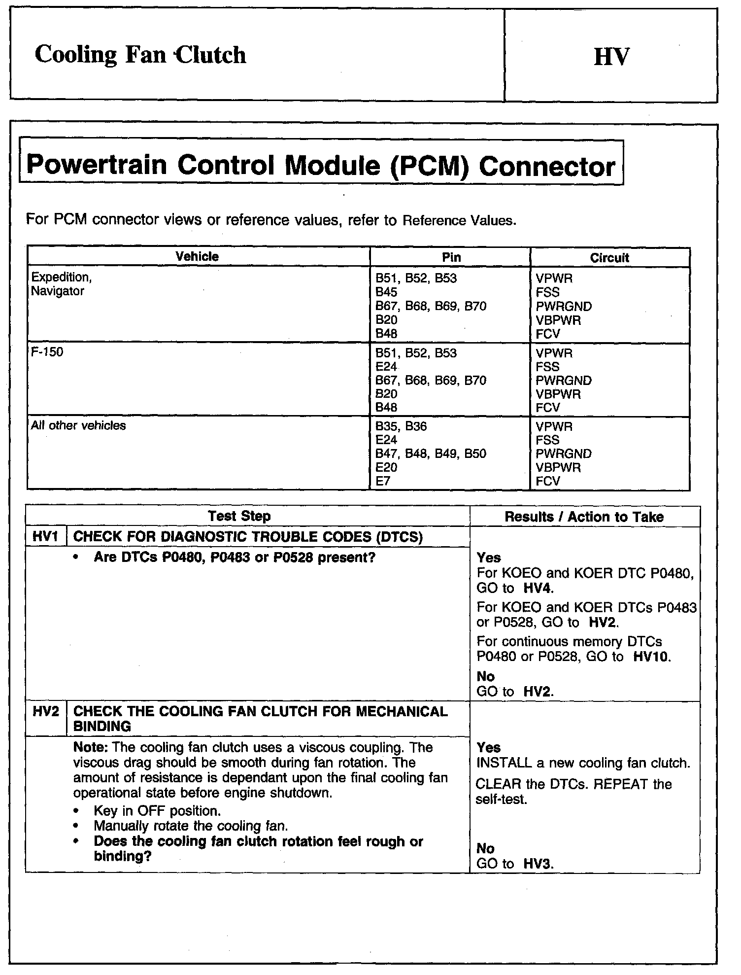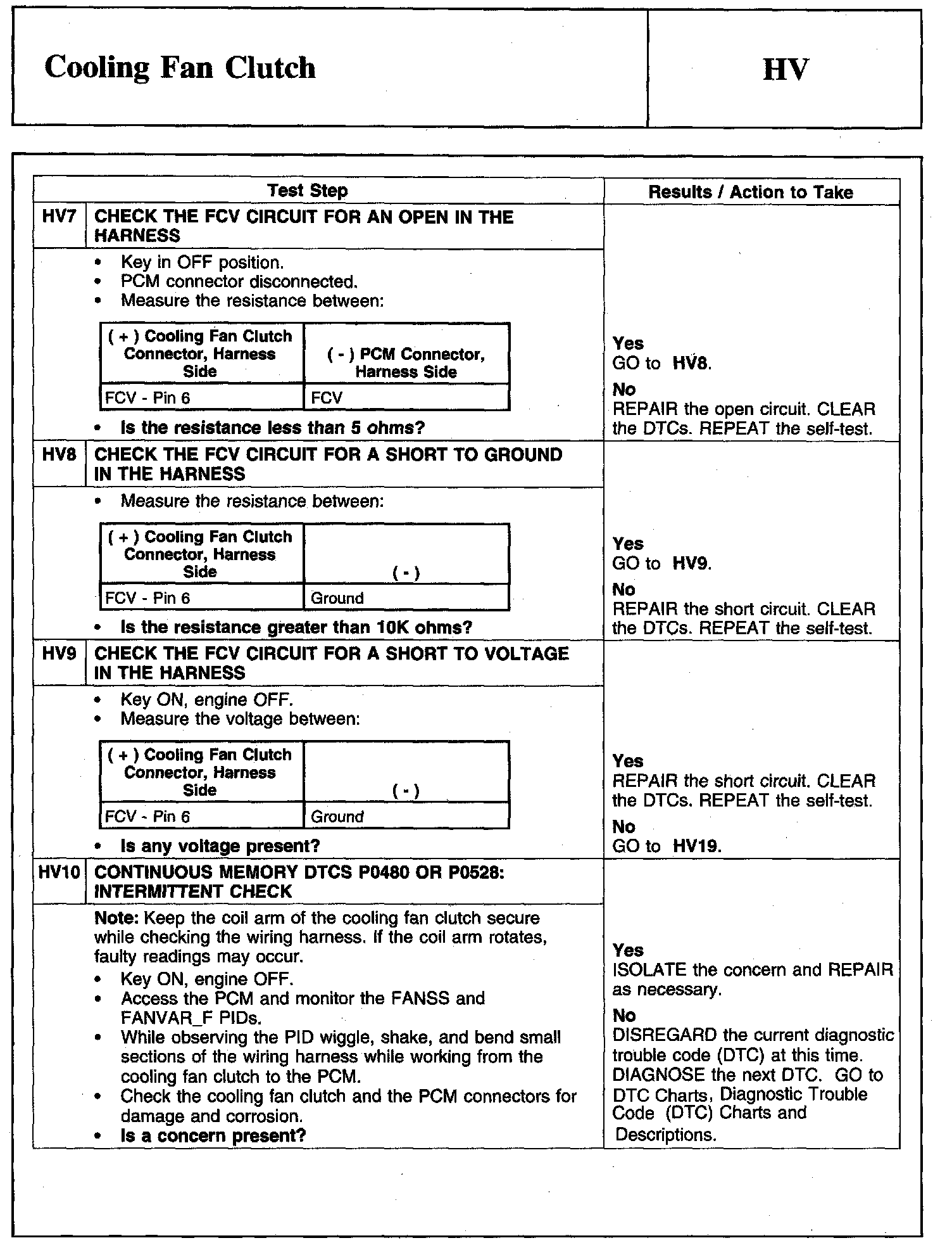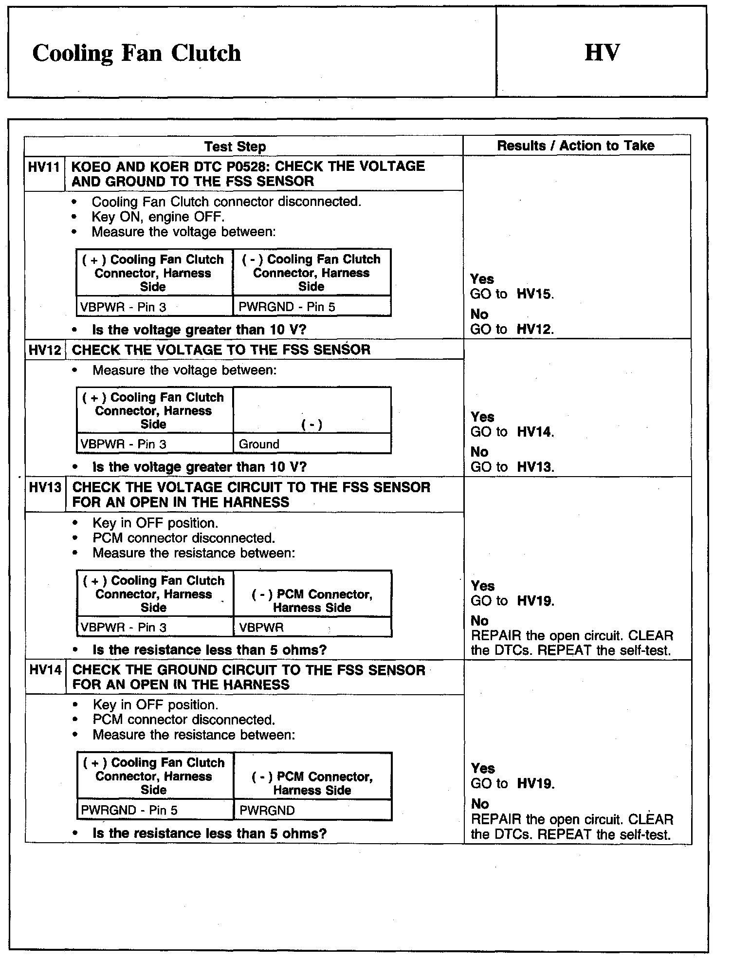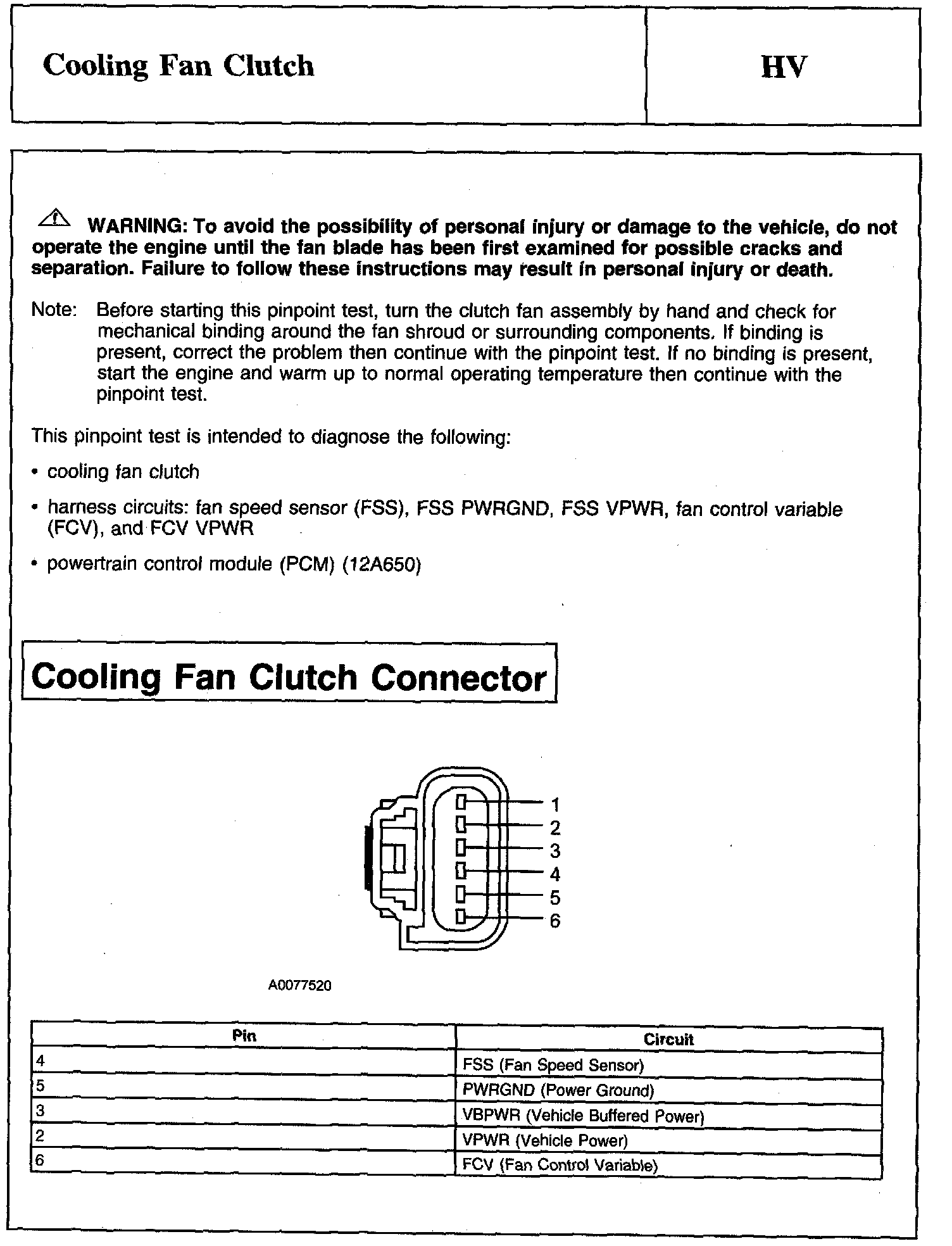 PINPOINT TEST HV: COOLING FAN CLUTCH