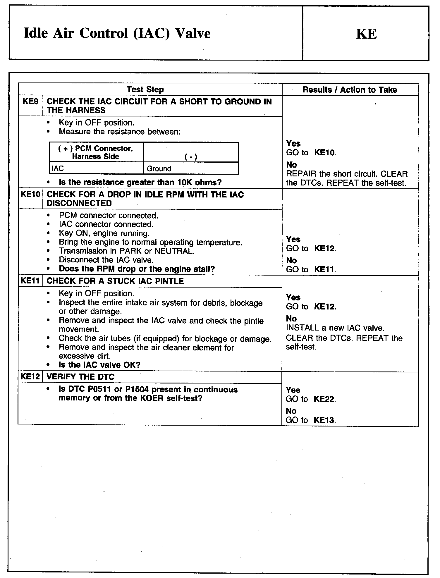PINPOINT TEST KE: IDLE AIR CONTROL (IAC) VALVE