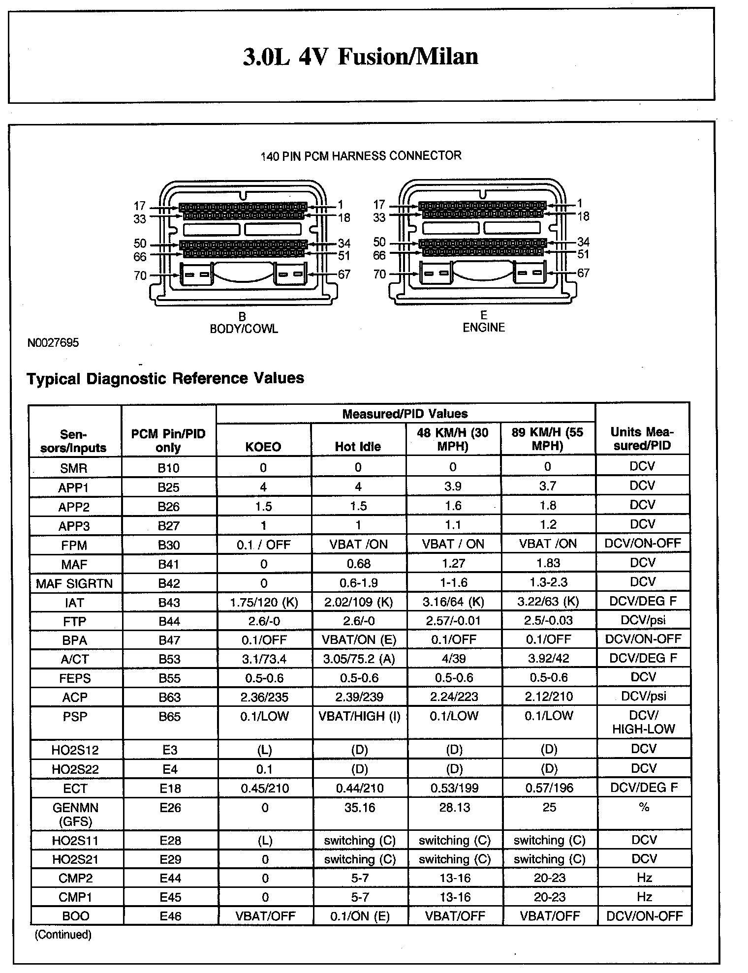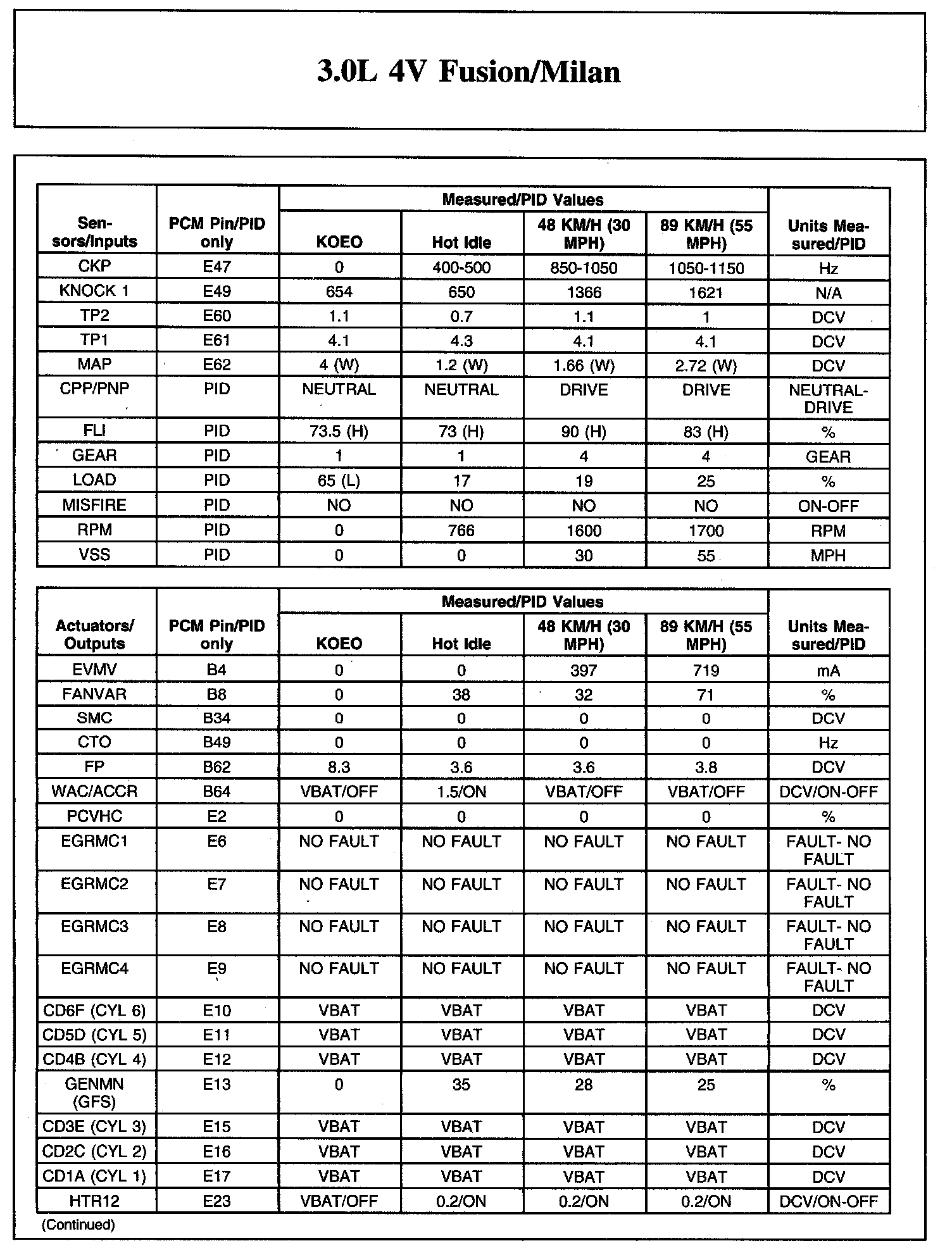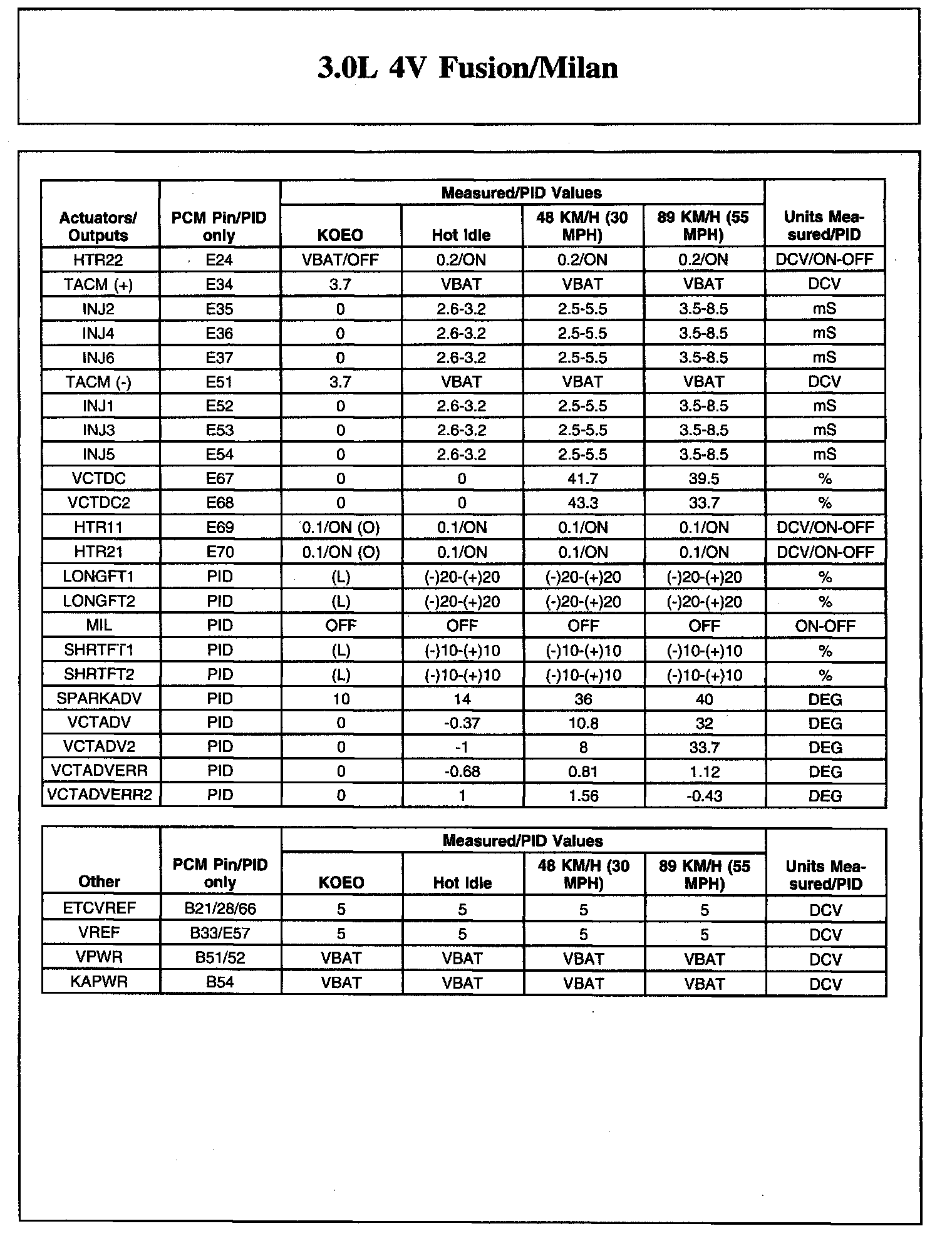 The Typical Diagnostic Reference Value Charts do not display fault parameter identifications (PIDs). These are PIDs which indicate a hard fault with the circuit. They display a value of YES or NO and are PIDs ending with the letter F.