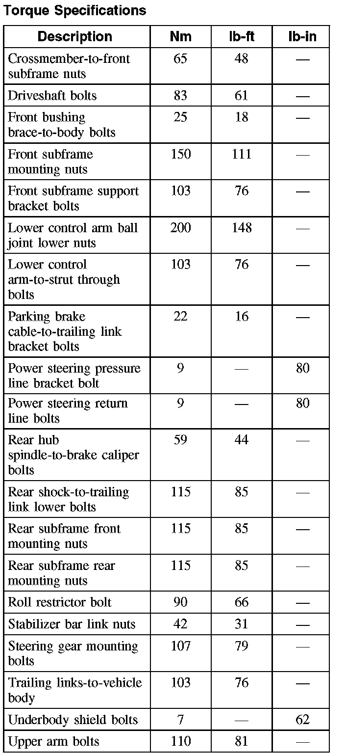 Torque Specifications: