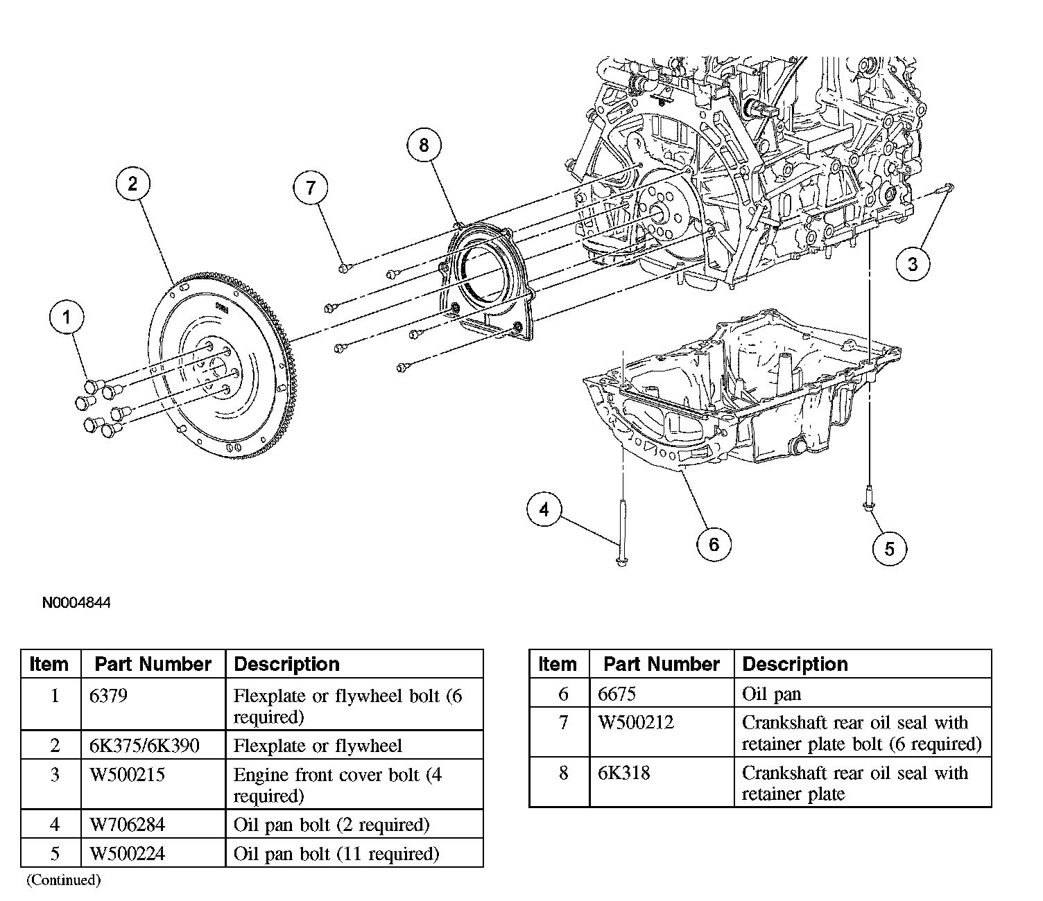 Lower End Components - Exploded View, Flexplate, Flywheel and Crankshaft Rear Seal