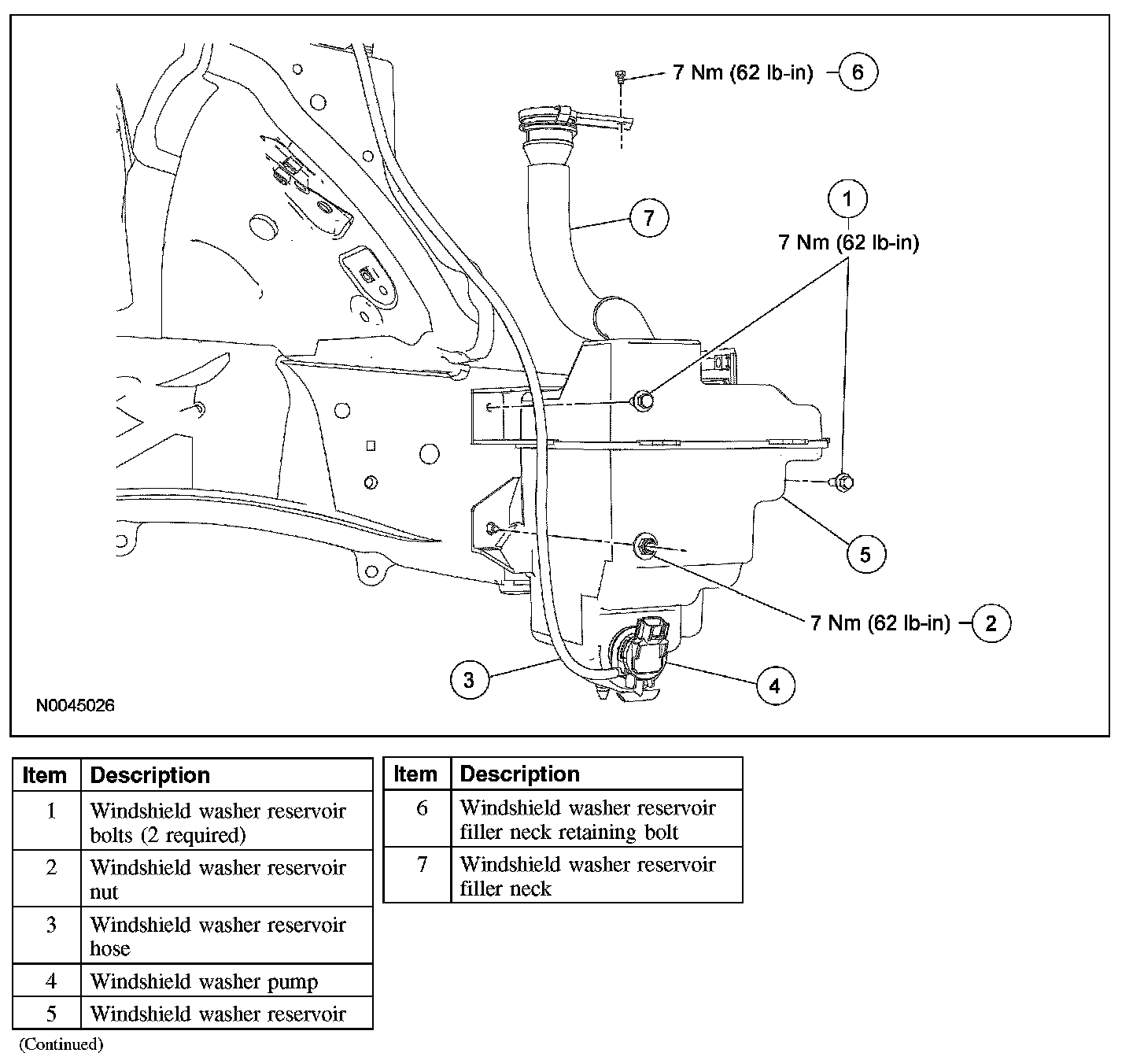 Wiper and Washer System - Exploded View, Washer Pump and Reservoir
