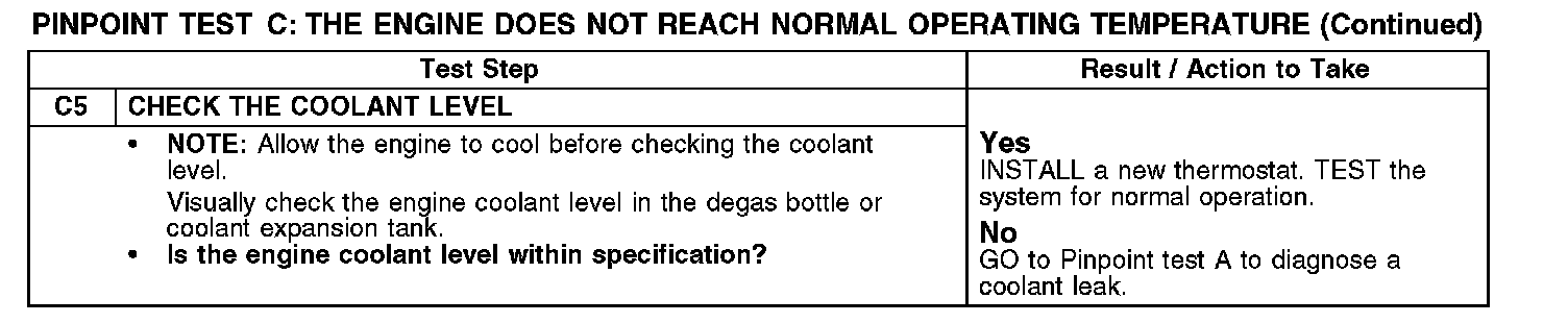 Pinpoint Test C: The Engine Does Not Reach Normal Operating TemperatureNormal Operation