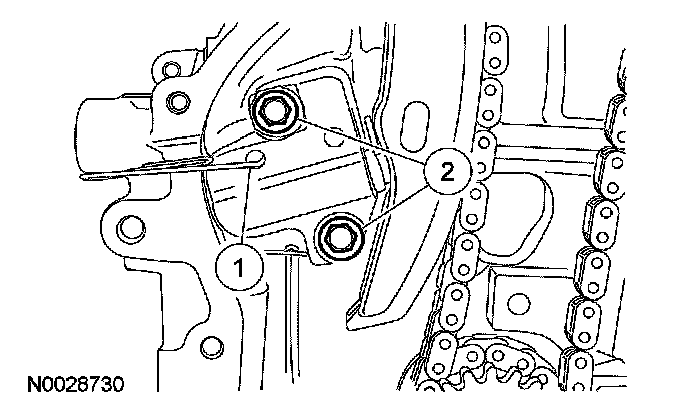2. Install the timing chain guide and the 2 bolts.