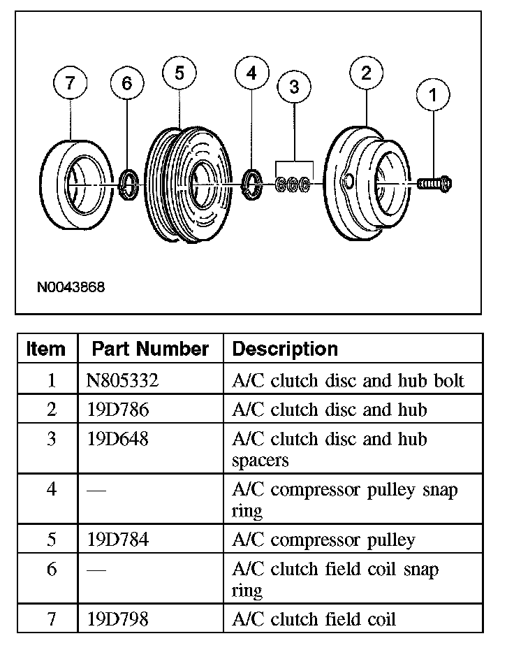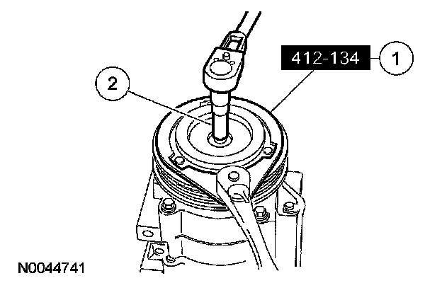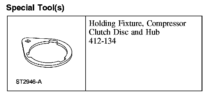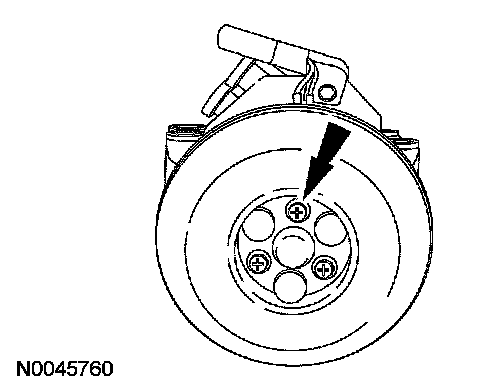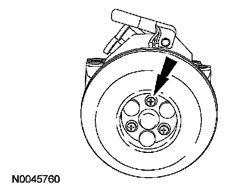 NOTE: If installing a new A/C compressor, the A/C clutch components should be reused unless obvious signs of damage are found. If excessive grooving is found, a new A/C clutch disc and hub and A/C compressor pulley must be installed together. Otherwise, each component can be installed individually where needed.