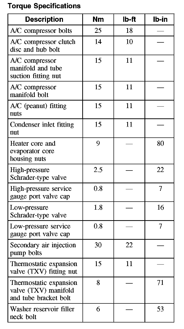 Torque Specifications:
