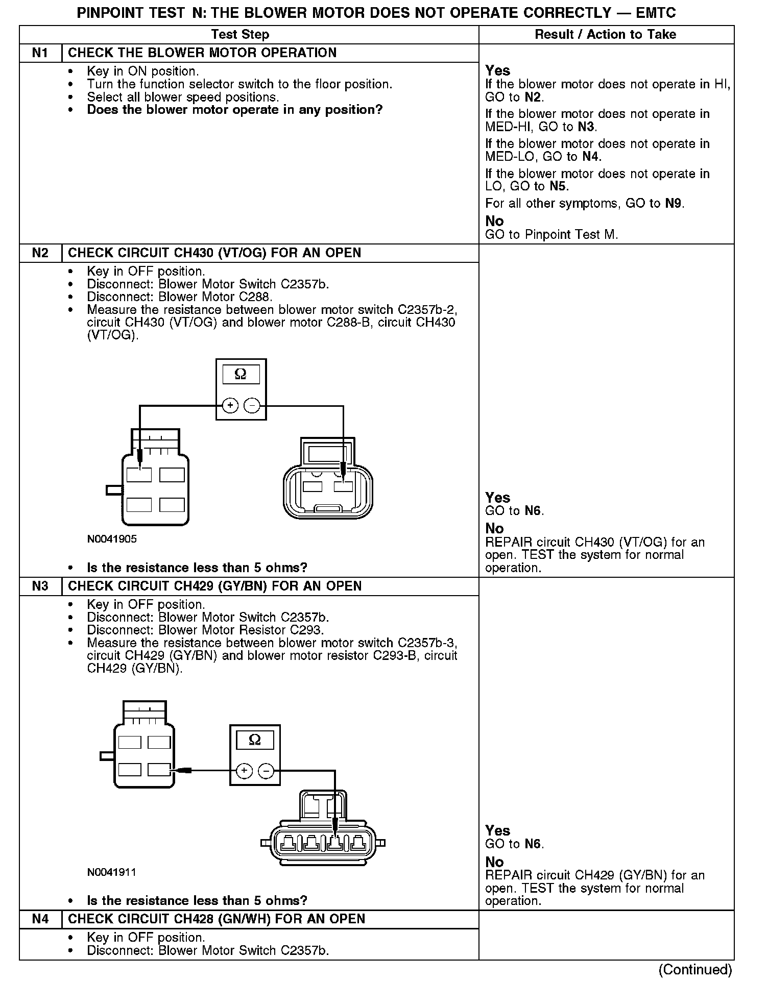 PINPOINT TEST N: THE BLOWER MOTOR DOES NOT OPERATE CORRECTLY - EMTCN1-N4:
