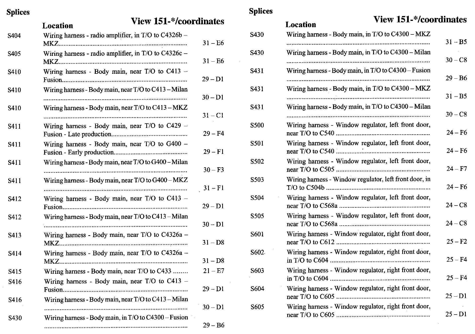 PLEASE NOTE: If a link on the Splices Location Index to a View is not provided, that means that the Splices and/or View in question does NOT apply to the vehicle model selected.