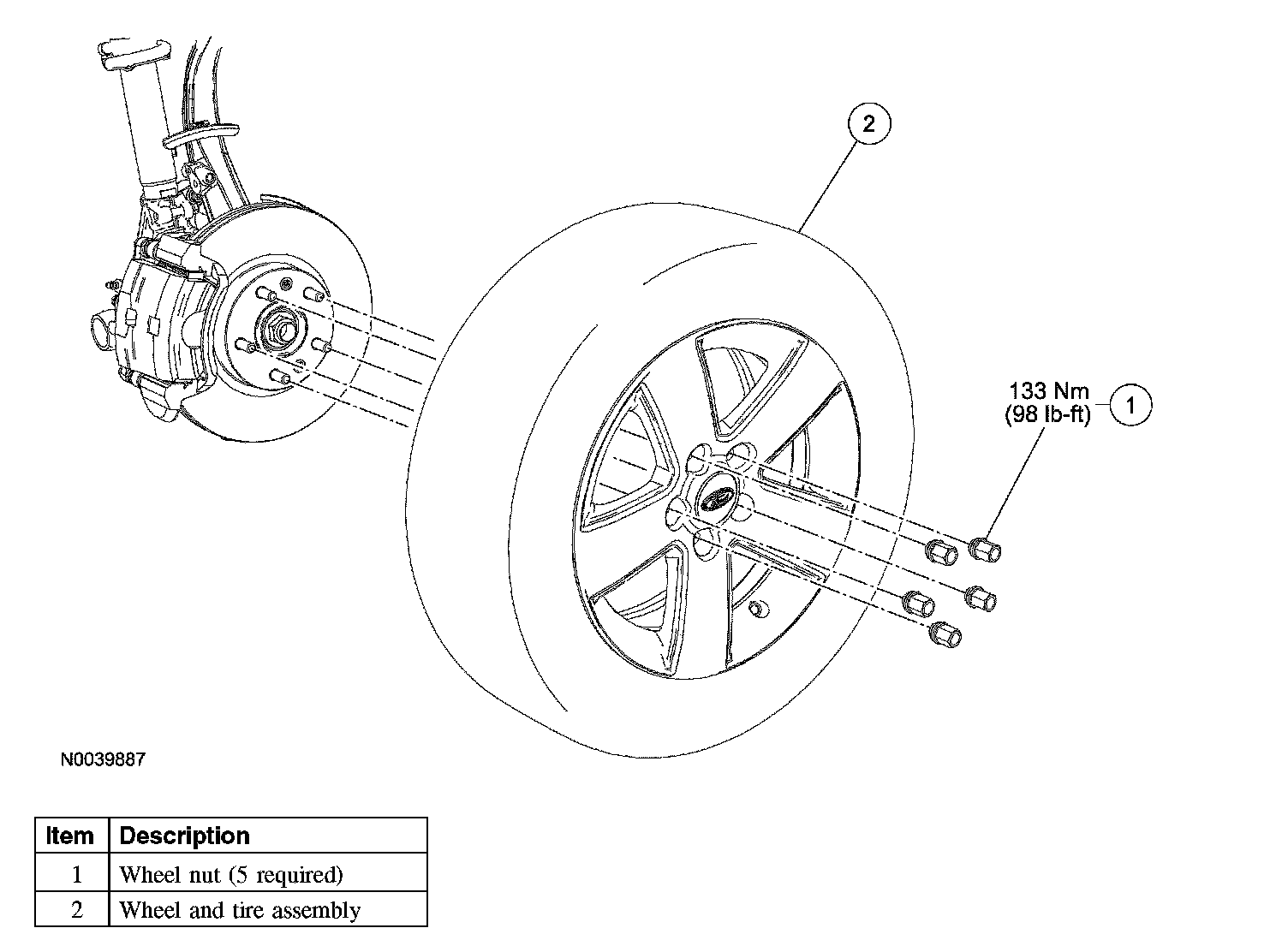 - Tighten to 133 Nm (98 ft. lbs.).